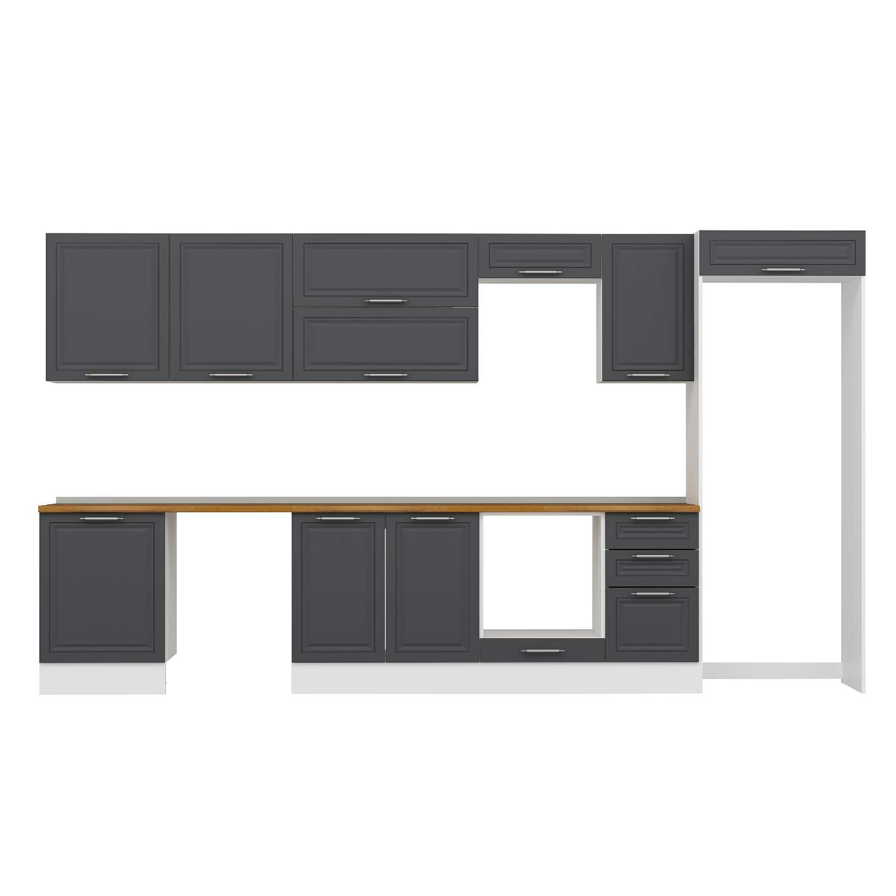 Alvinka 395X222 Cm Klasik Mebran Mutfak Dolabı Mb-E90S60S45-2 Mebran | Antrasit - Mdf
