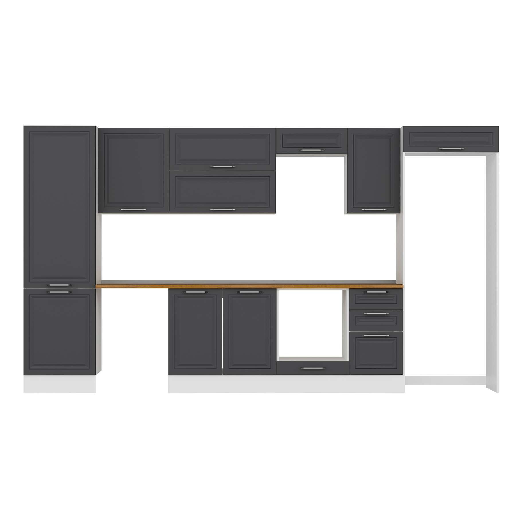 Alvinka 395X222 Cm Klasik Mebran Mutfak Dolabı Mbb-E90B60S45-2 Mebran | Antrasit - Suntalam