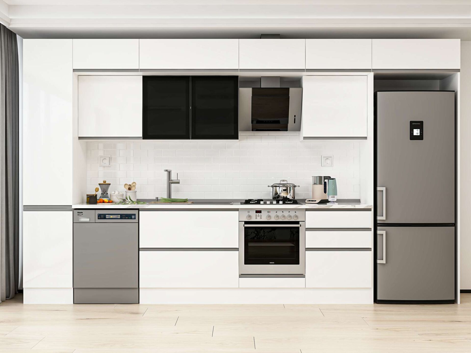 Alvinka 395X240 Cm High Gloss Mutfak Dolabı Mbb-E90B45S60-3 High Gloss | Beyaz - Mdf