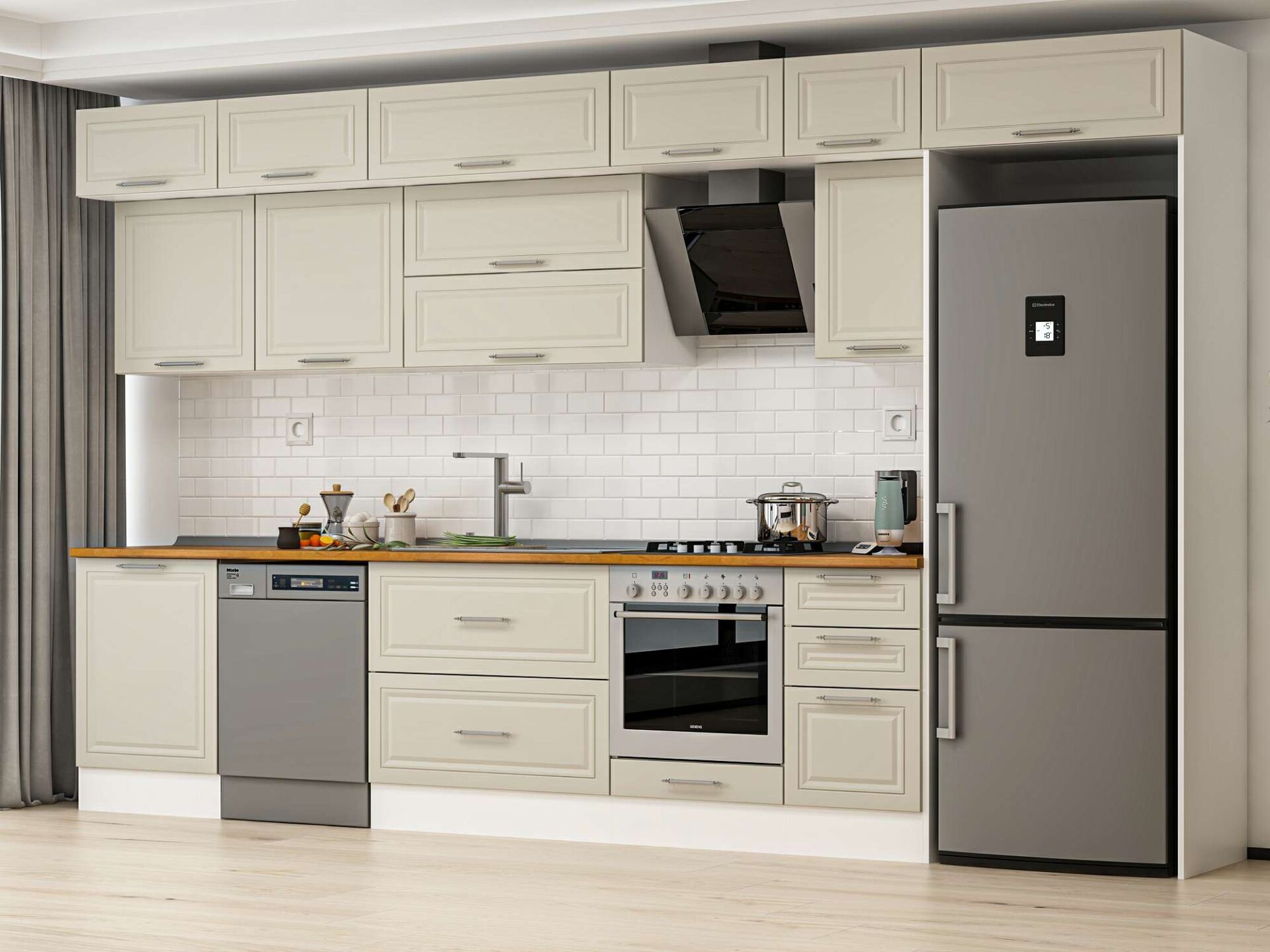 Alvinka 395X240 Cm Klasik Mebran Mutfak Dolabı Mb-E90S60S45-2 Mebran | Kumtaşı - Mdf