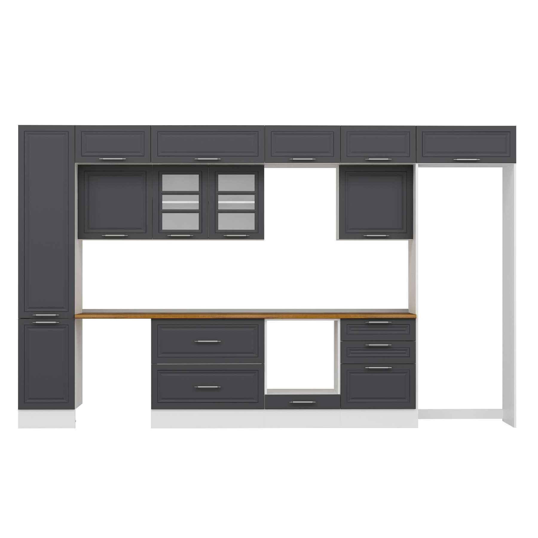Alvinka 395X240 Cm Klasik Mebran Mutfak Dolabı Mbb-E90B45S60-3 Mebran | Antrasit - Suntalam