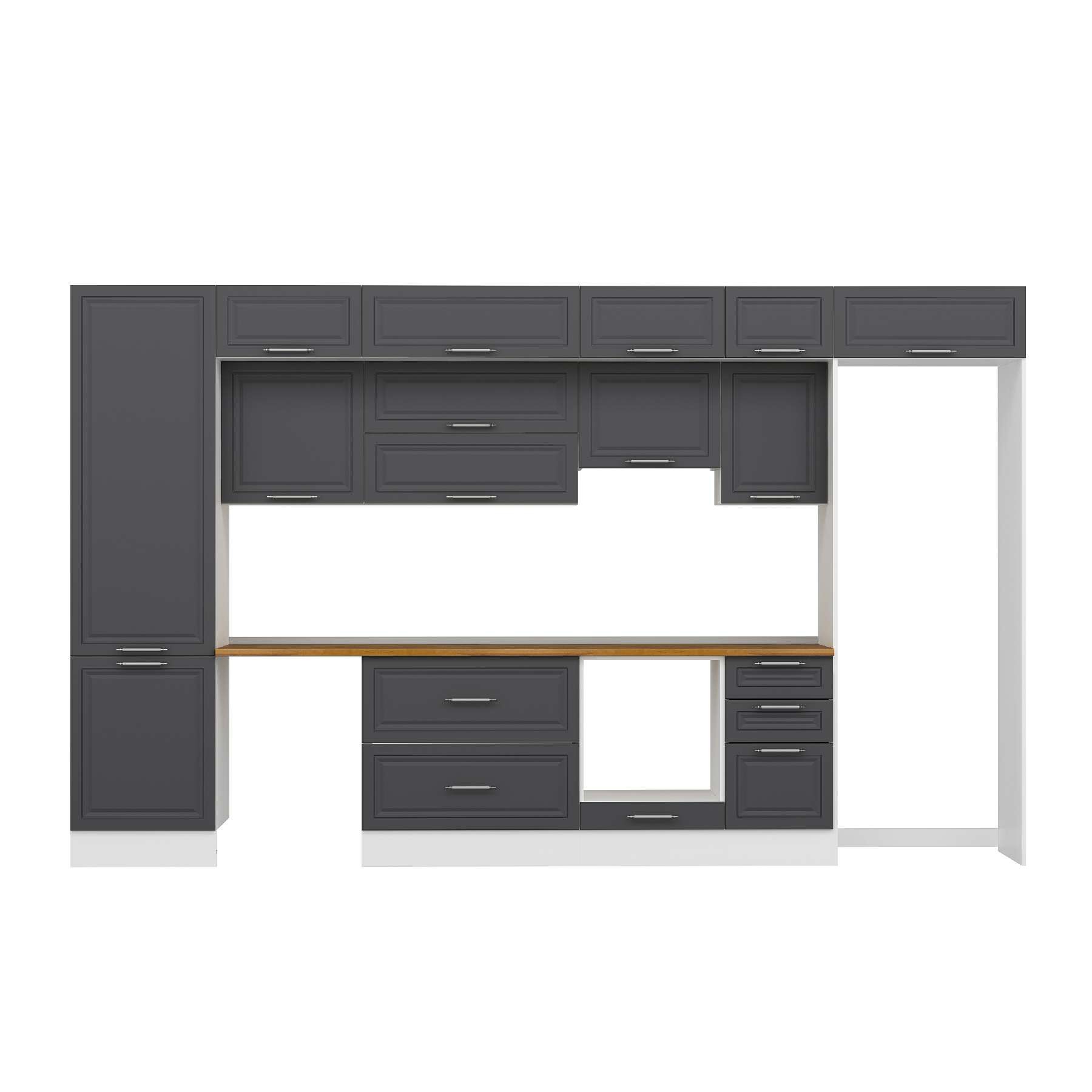 Alvinka 395X240 Cm Klasik Mebran Mutfak Dolabı Mbb-E90B60S45-1 Mebran | Antrasit - Mdf