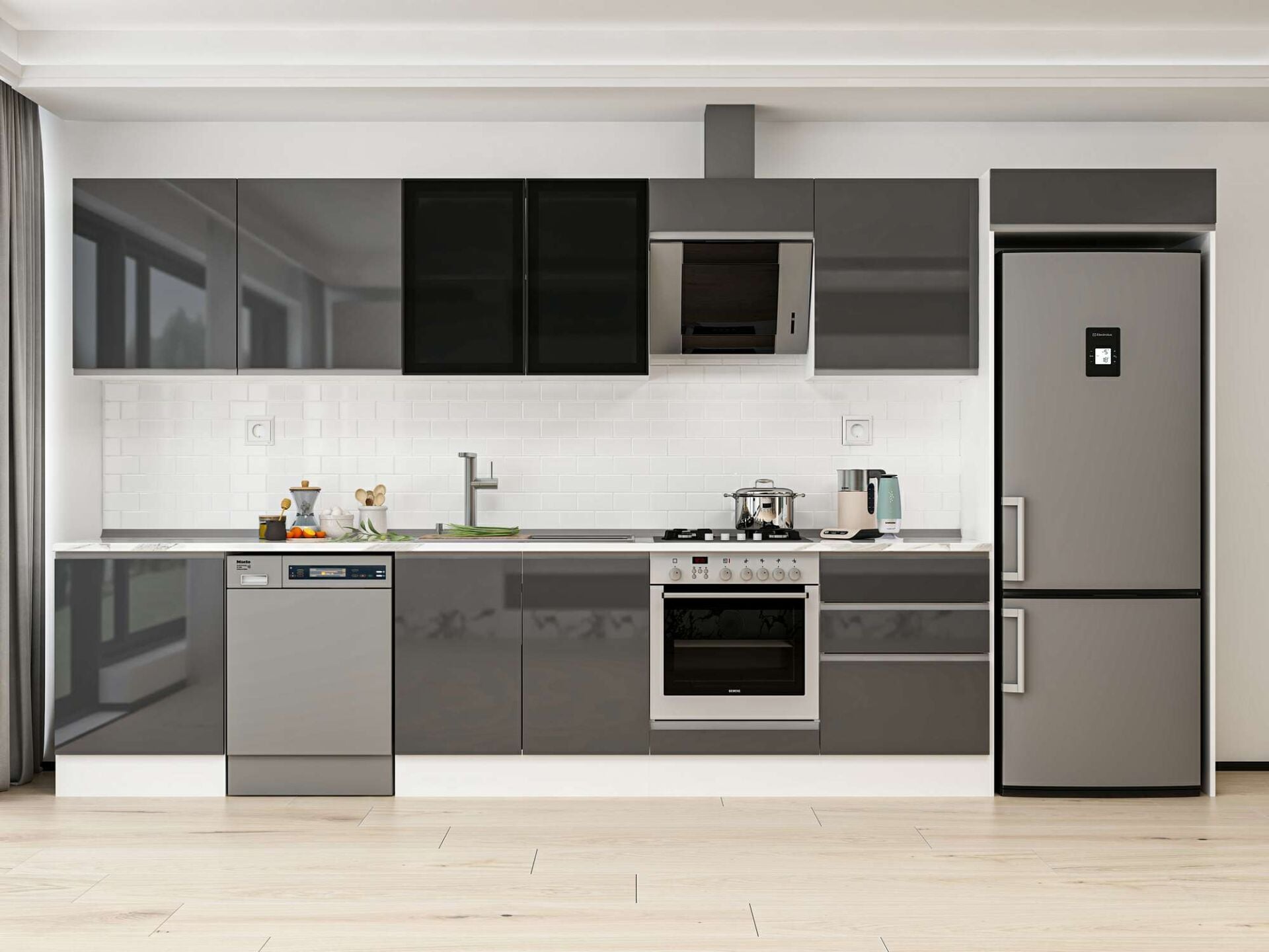 Alvinka 400X222 Cm High Gloss Mutfak Dolabı Mb-E80S60S60-3 High Gloss | Antrasit - Mdf
