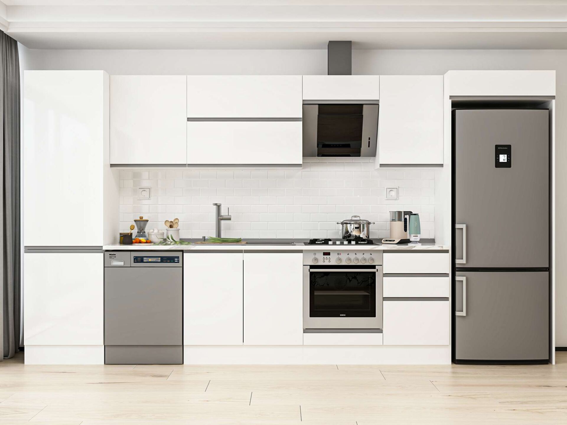 Alvinka 400X222 Cm High Gloss Mutfak Dolabı Mbb-E90B60S50-2 High Gloss | Beyaz - Mdf