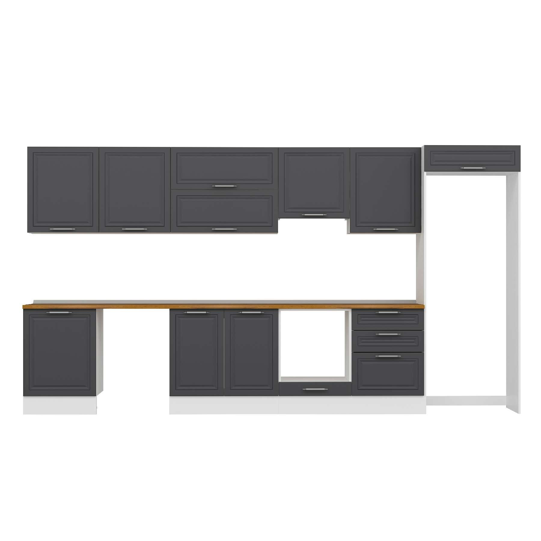 Alvinka 400X222 Cm Klasik Mebran Mutfak Dolabı Mb-E80S60S60-1 Mebran | Antrasit - Suntalam