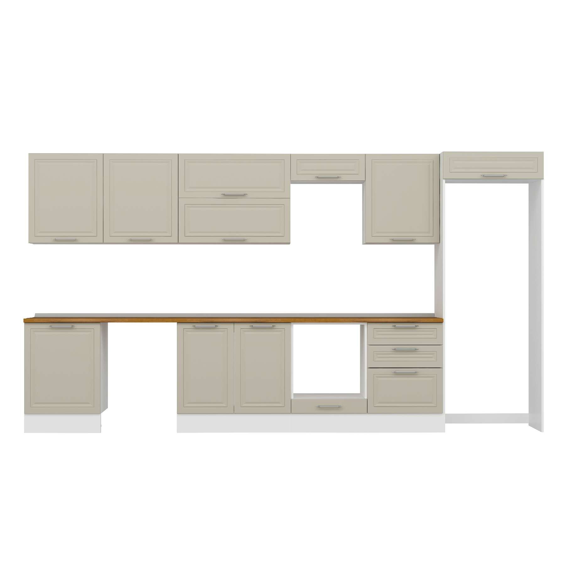 Alvinka 400X222 Cm Klasik Mebran Mutfak Dolabı Mb-E80S60S60-2 Mebran | Kumtaşı - Mdf