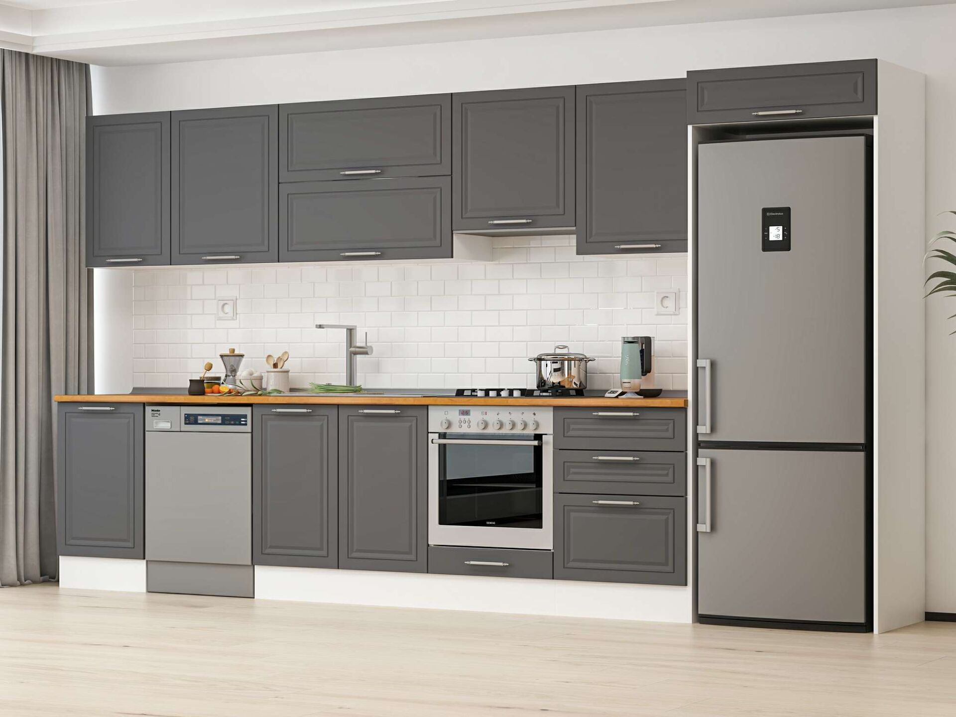 Alvinka 400X222 Cm Klasik Mebran Mutfak Dolabı Mb-E90S50S60-1