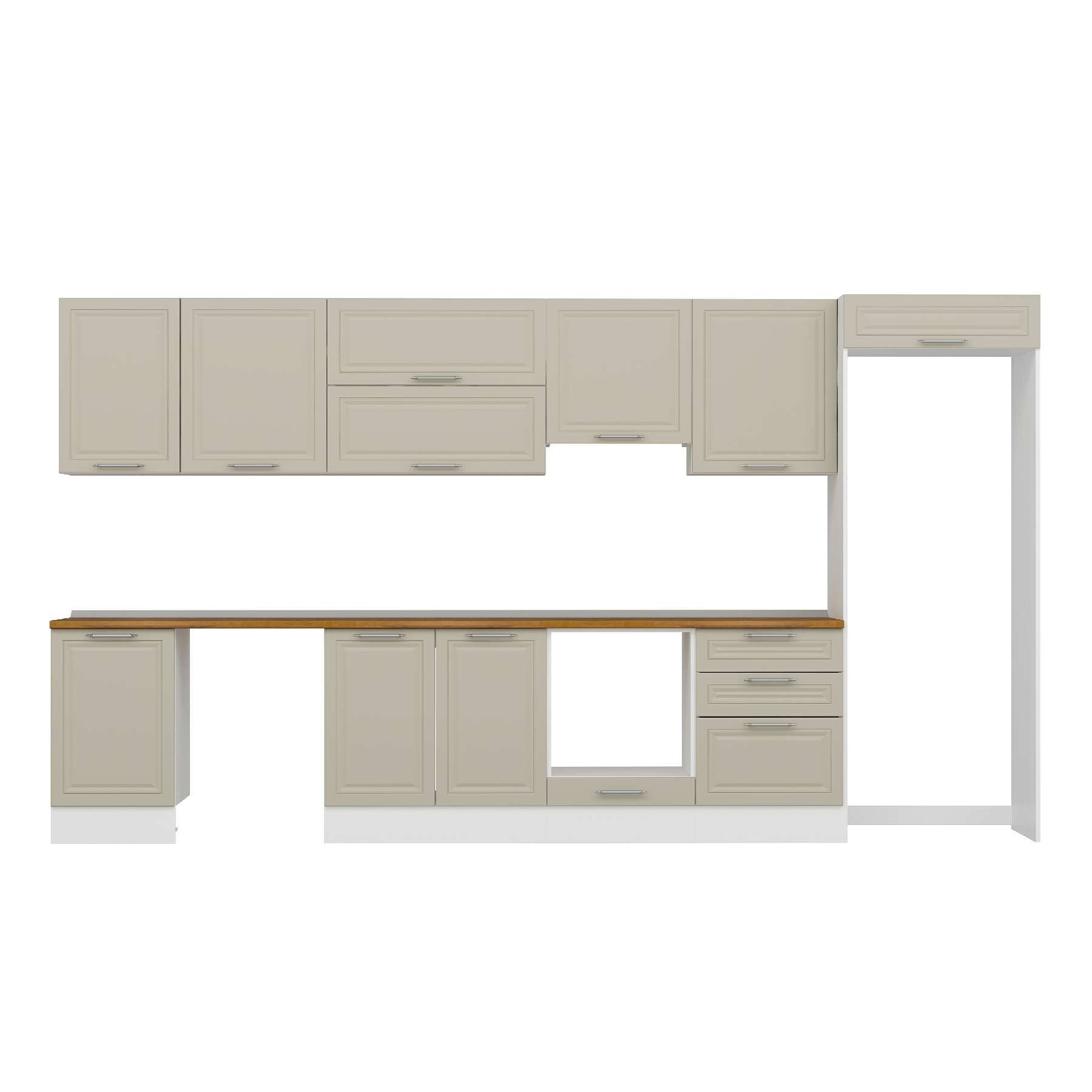 Alvinka 400X222 Cm Klasik Mebran Mutfak Dolabı Mb-E90S50S60-1 Mebran | Kumtaşı - Mdf