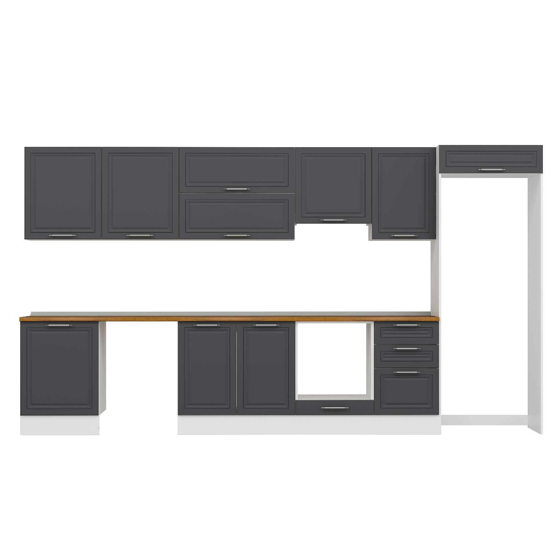 Alvinka 400X222 Cm Klasik Mebran Mutfak Dolabı Mb-E90S60S50-1 Mebran | Antrasit - Suntalam