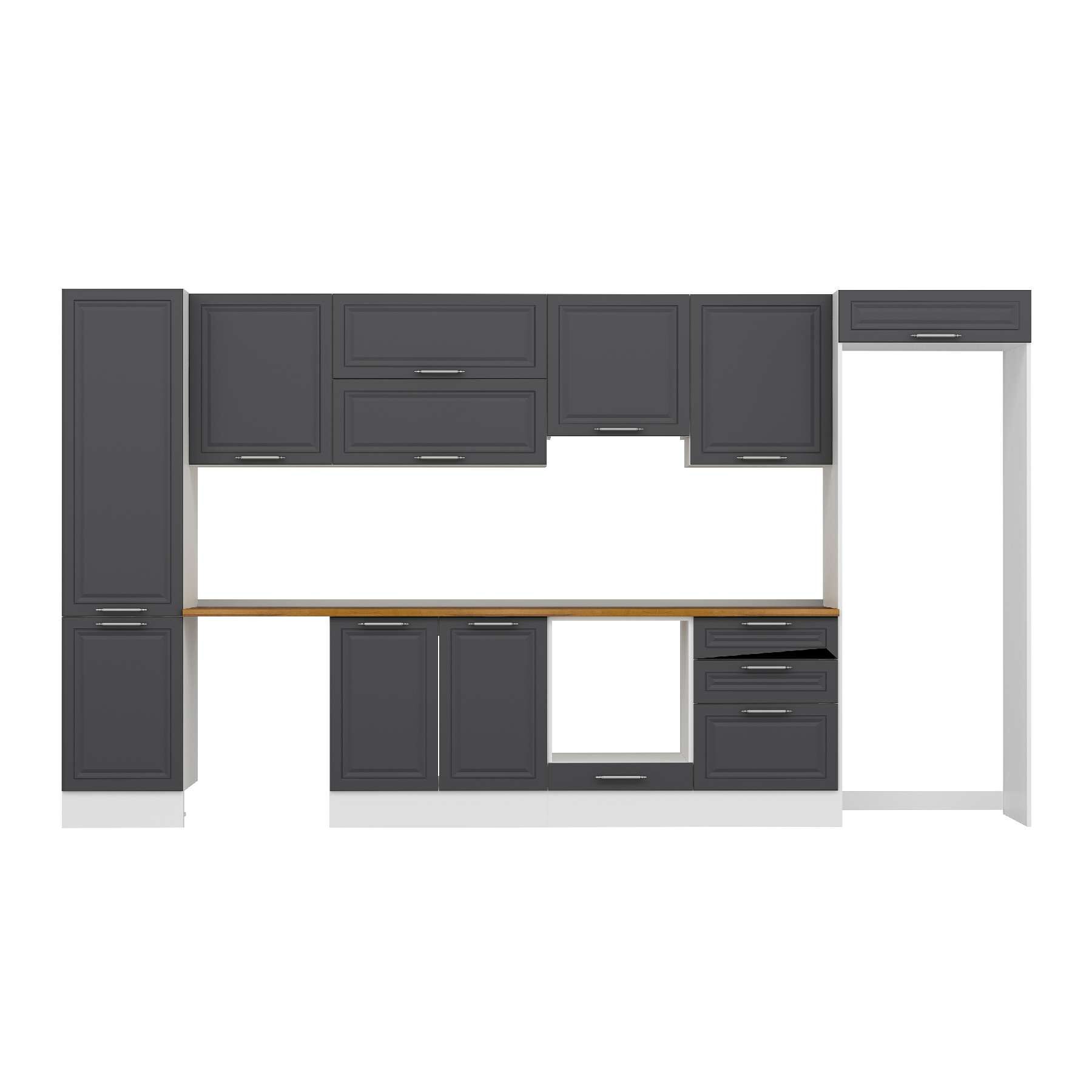 Alvinka 400X222 Cm Klasik Mebran Mutfak Dolabı Mbb-E90B50S60-1 Mebran | Antrasit - Suntalam