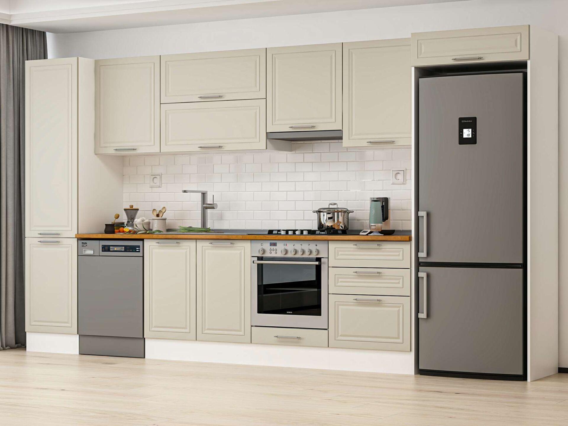 Alvinka 400X222 Cm Klasik Mebran Mutfak Dolabı Mbb-E90B50S60-1 Mebran | Kumtaşı - Mdf