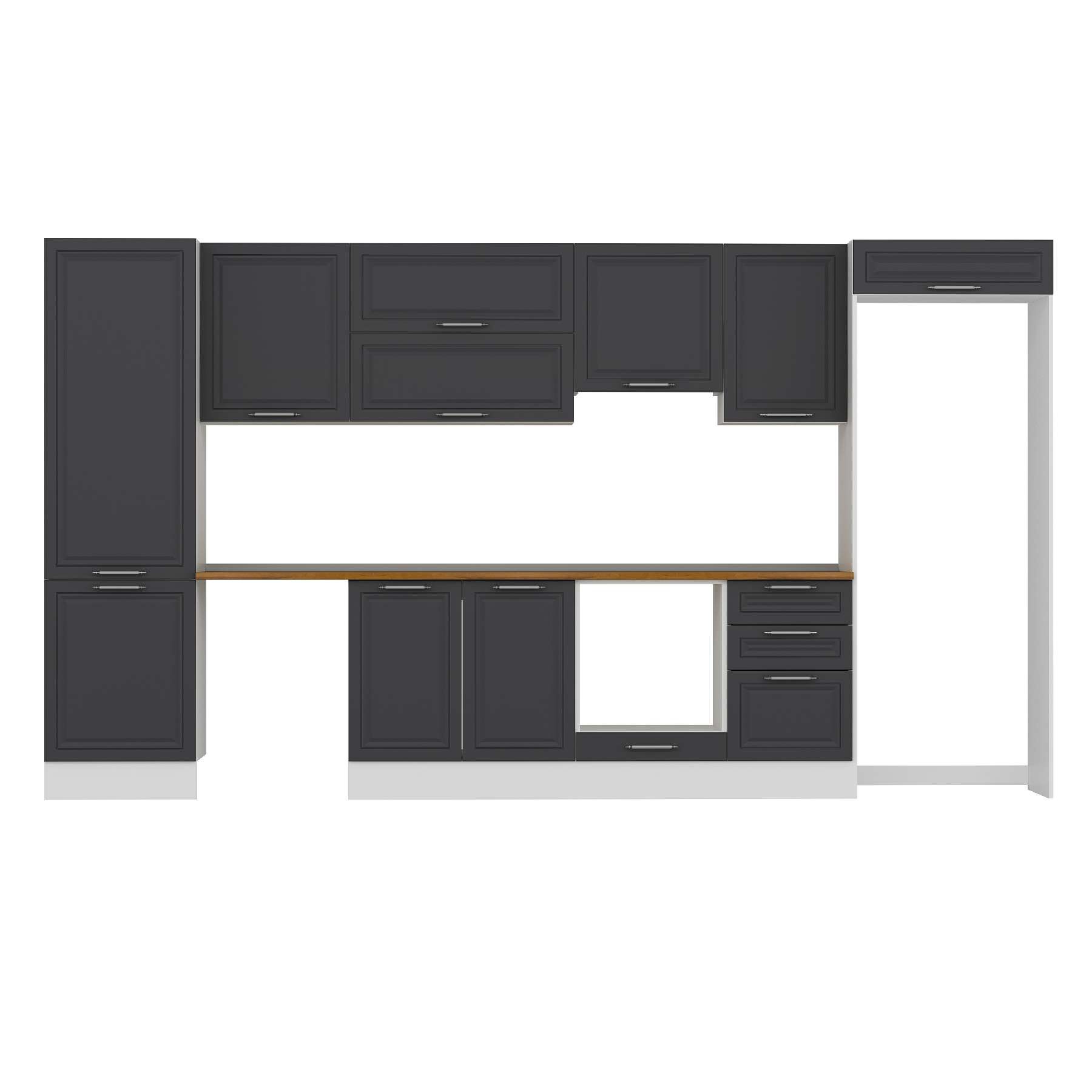 Alvinka 400X222 Cm Klasik Mebran Mutfak Dolabı Mbb-E90B60S50-1 Mebran | Antrasit - Suntalam