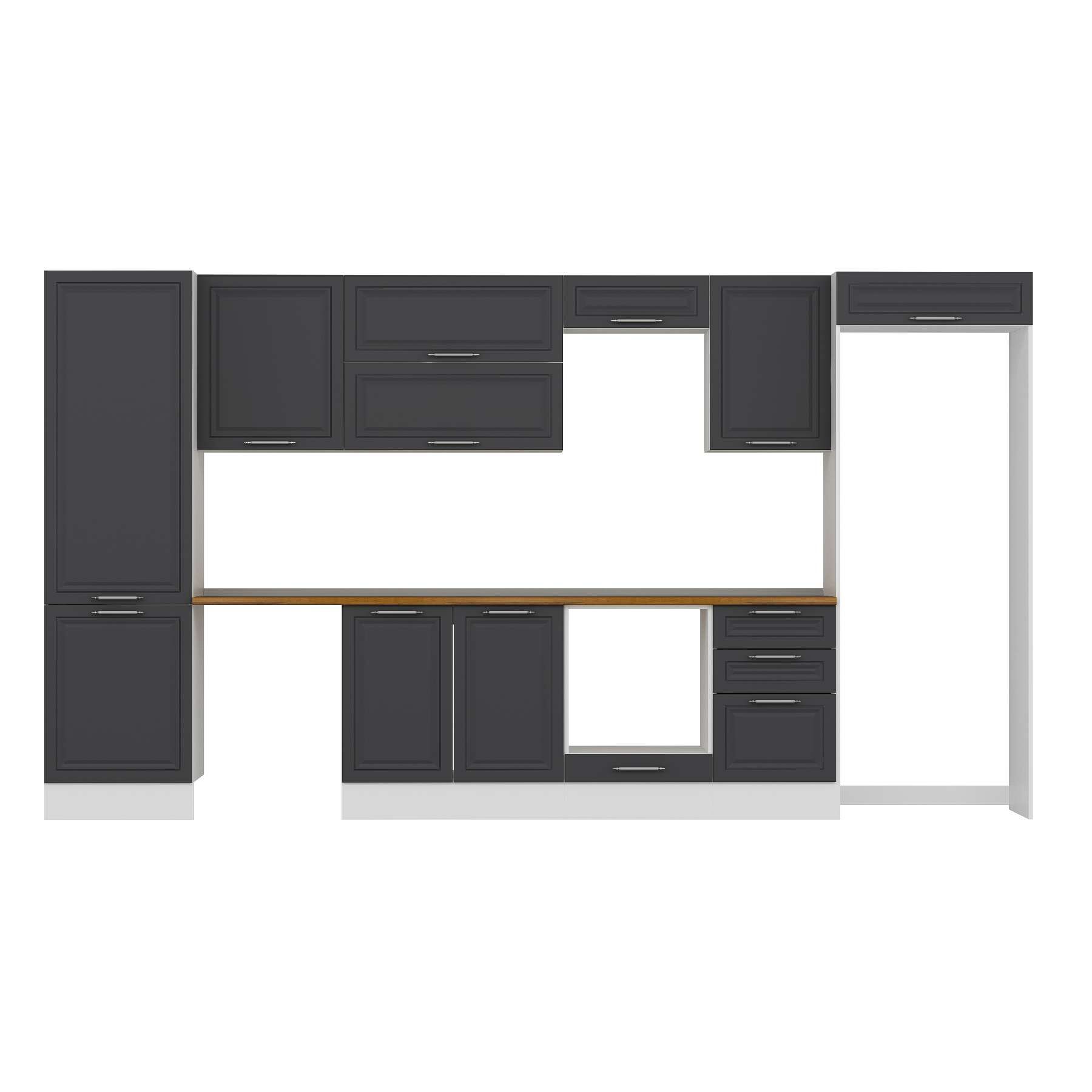 Alvinka 400X222 Cm Klasik Mebran Mutfak Dolabı Mbb-E90B60S50-2 Mebran | Antrasit - Mdf