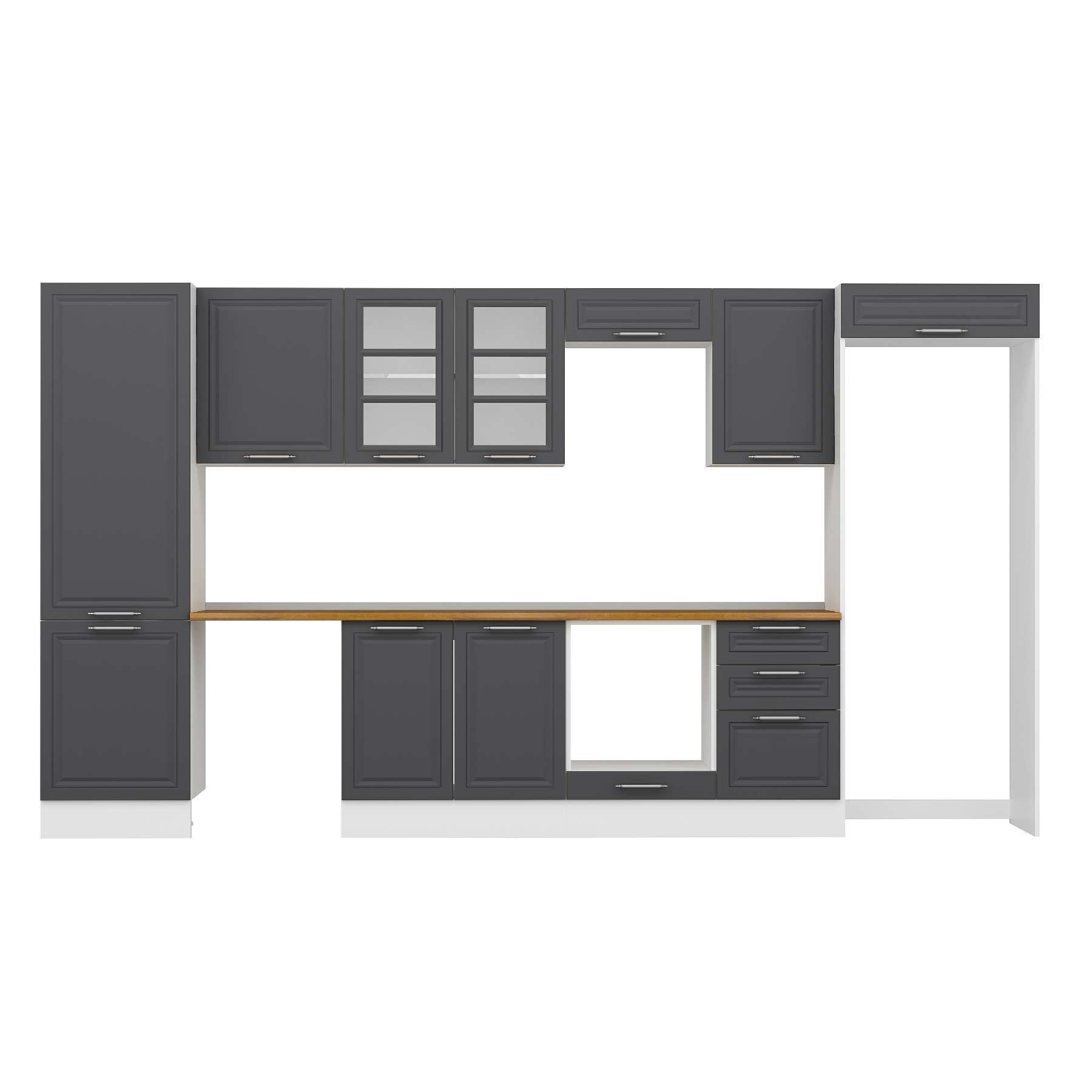 Alvinka 400X222 Cm Klasik Mebran Mutfak Dolabı Mbb-E90B60S50-3 Mebran | Antrasit - Mdf