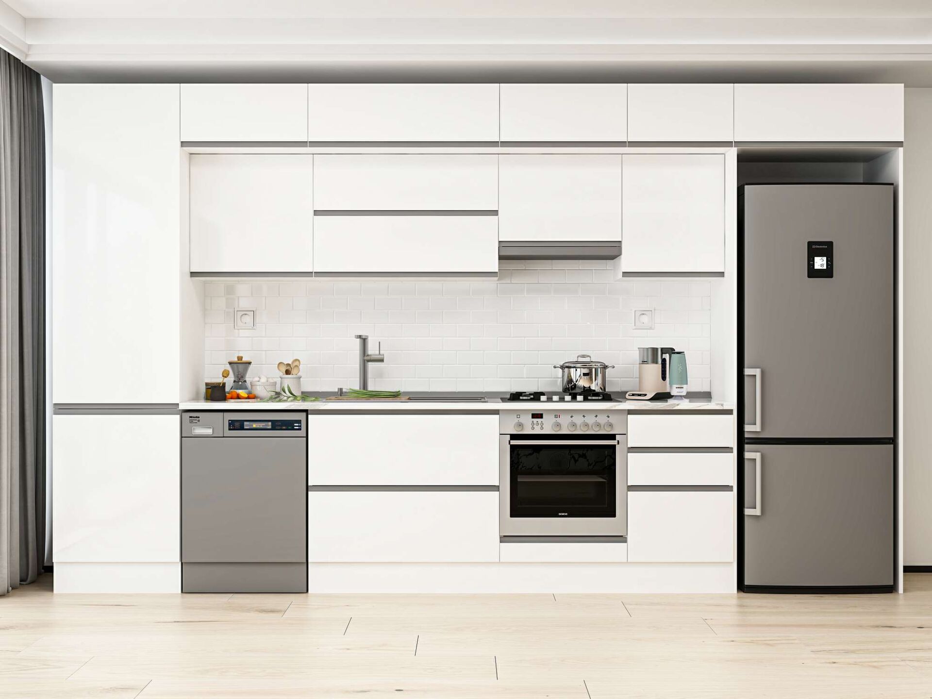 Alvinka 400X240 Cm High Gloss Mutfak Dolabı Mbb-E90B60S50-1 High Gloss | Beyaz - Suntalam