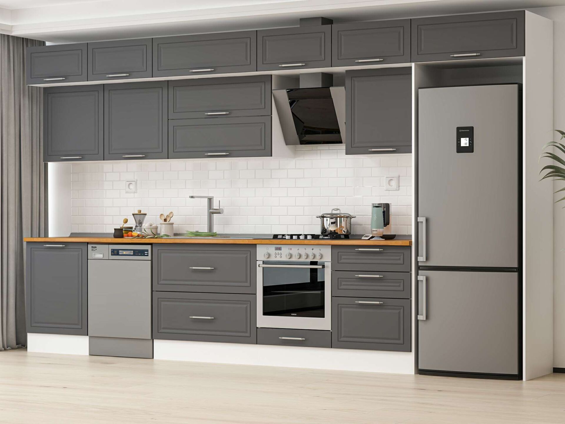 Alvinka 400X240 Cm Klasik Mebran Mutfak Dolabı Mb-E80S60S60-2