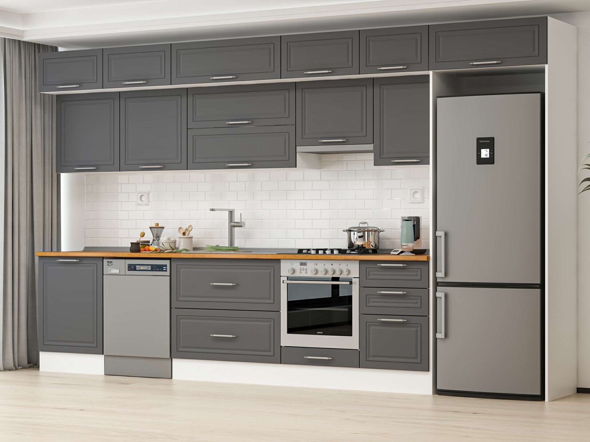 Alvinka 400X240 Cm Klasik Mebran Mutfak Dolabı Mb-E90S60S50-1