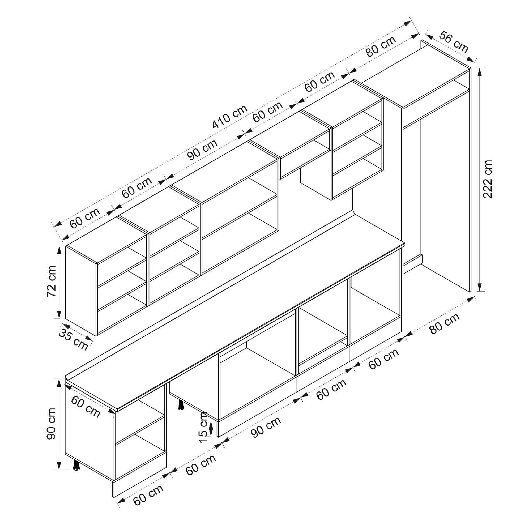 Alvinka 410X222 Cm Klasik Mebran Mutfak Dolabı Mb-E90S60S60-2 Mebran | Beyaz - Suntalam