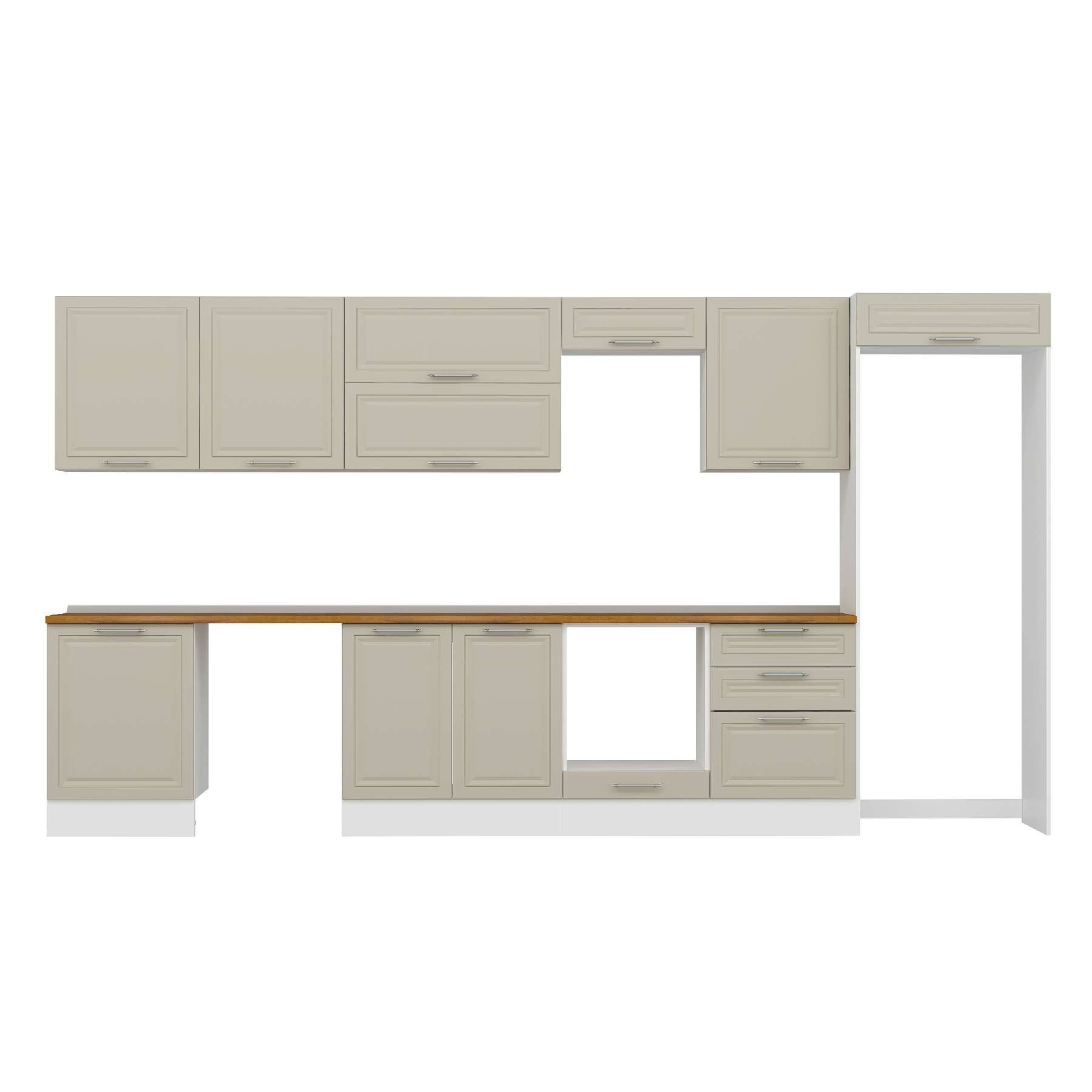 Alvinka 410X222 Cm Klasik Mebran Mutfak Dolabı Mb-E90S60S60-2 Mebran | Kumtaşı - Mdf