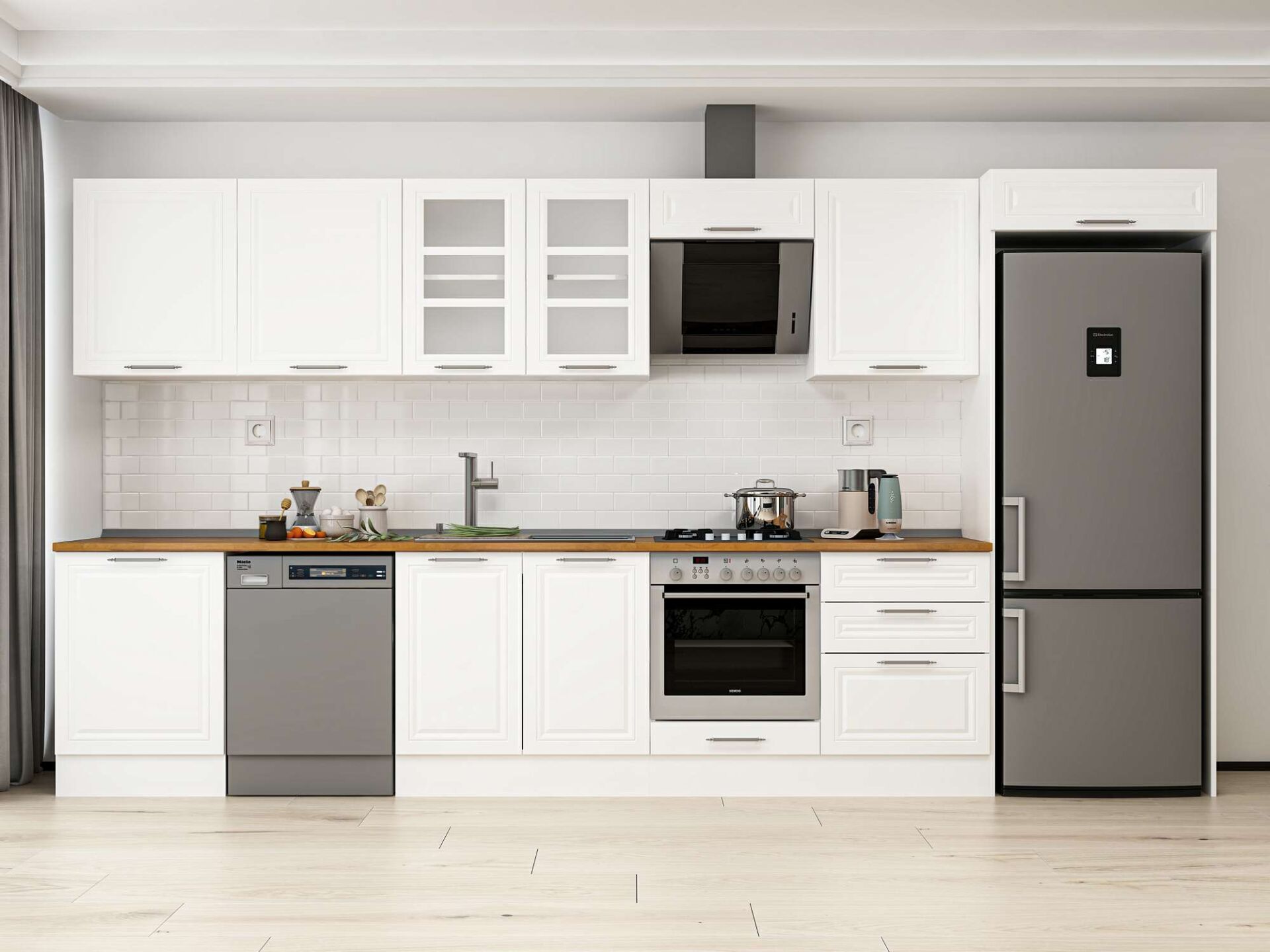 Alvinka 410X222 Cm Klasik Mebran Mutfak Dolabı Mb-E90S60S60-3 Mebran | Beyaz - Mdf