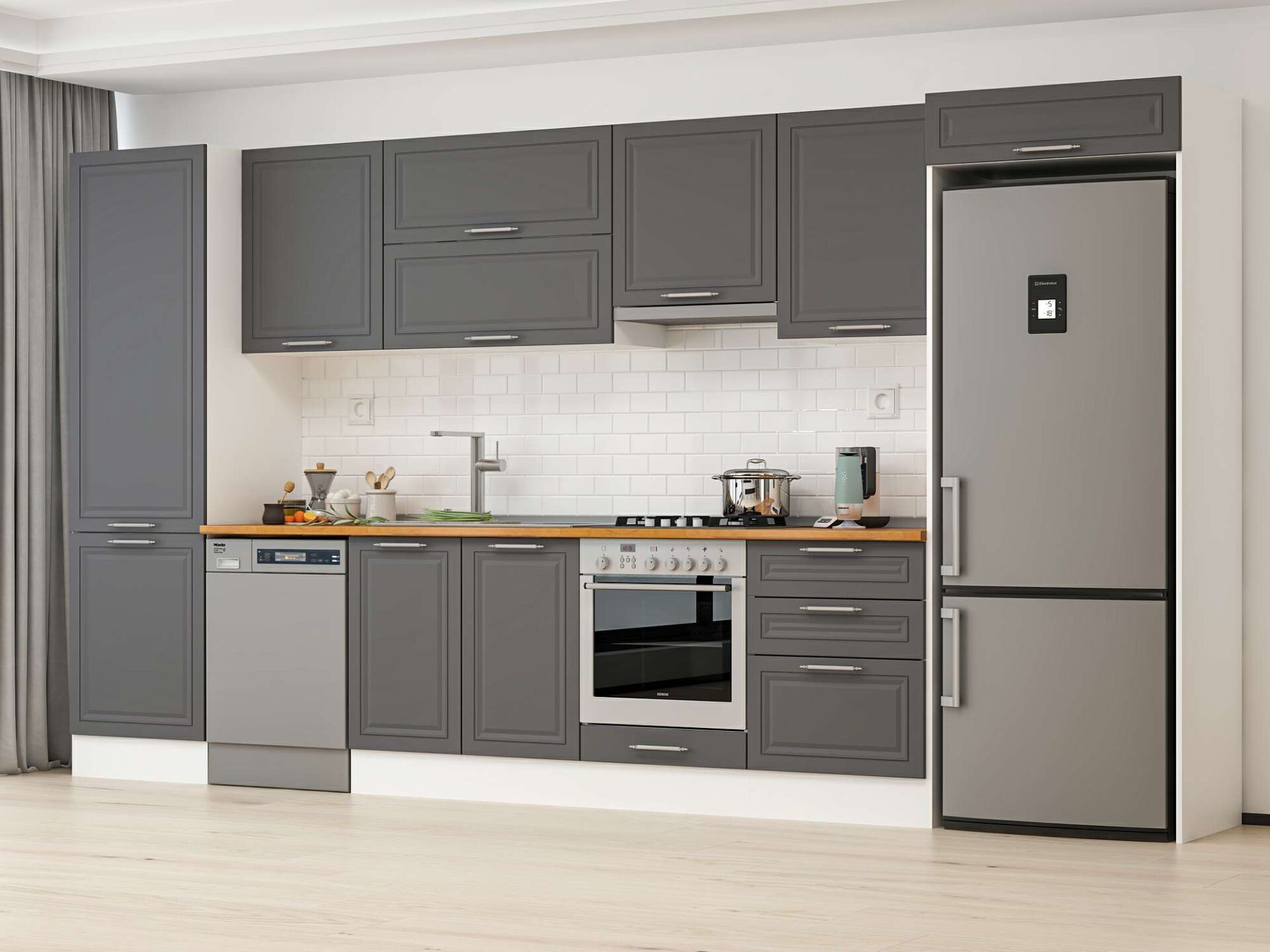 Alvinka 410X222 Cm Klasik Mebran Mutfak Dolabı Mbb-E90B60S60-1