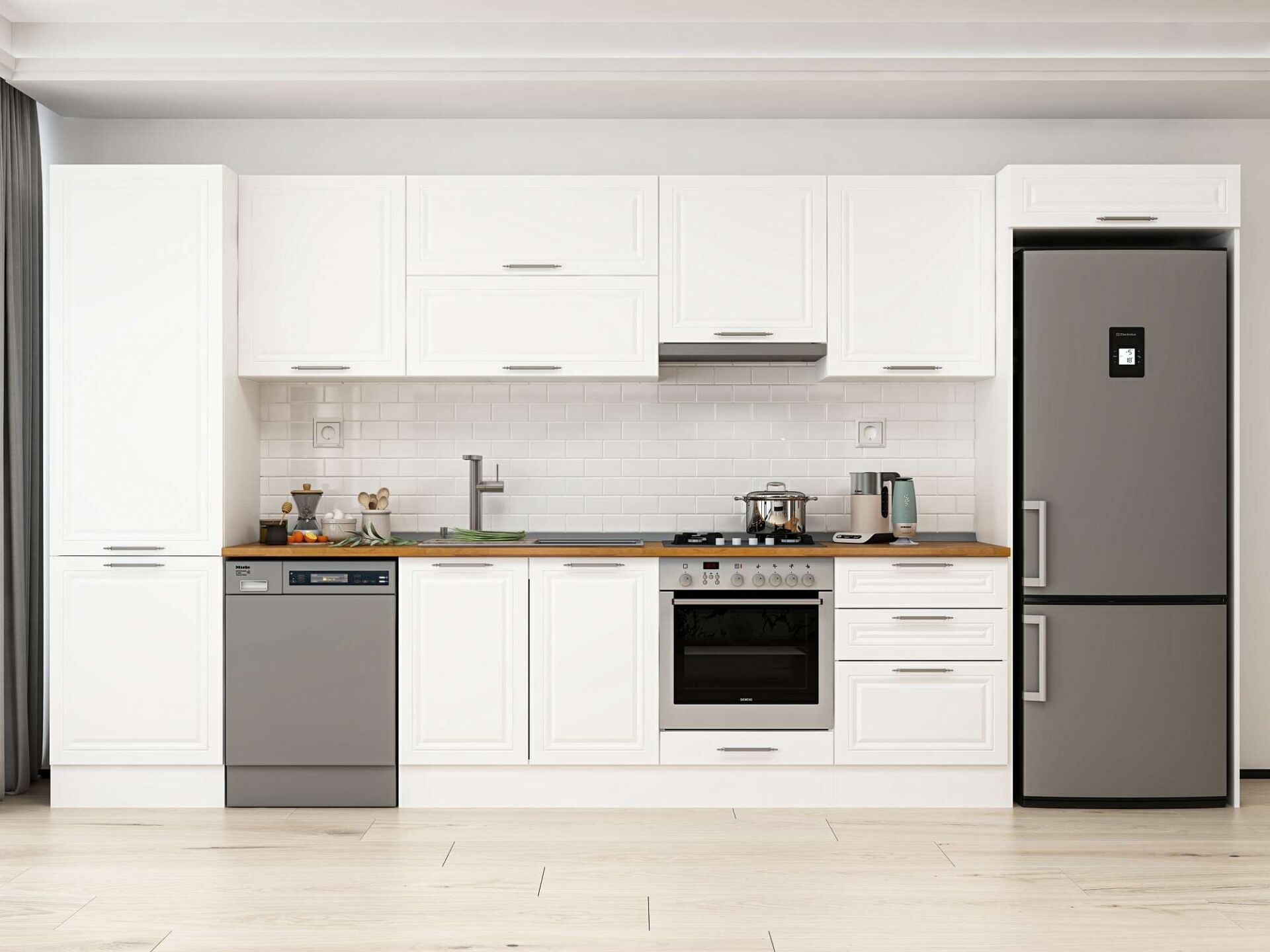 Alvinka 410X222 Cm Klasik Mebran Mutfak Dolabı Mbb-E90B60S60-1 Mebran | Beyaz - Suntalam