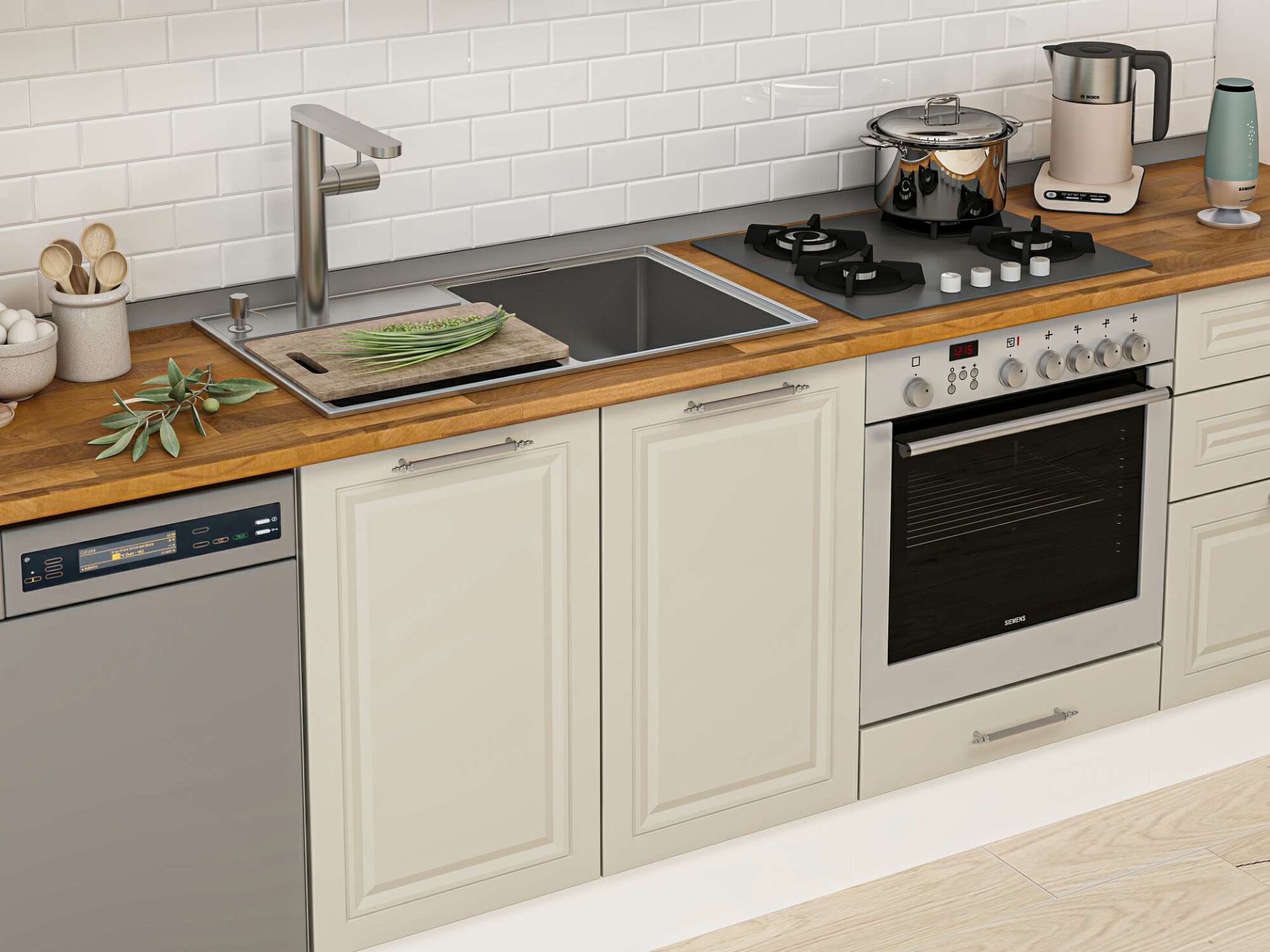 Alvinka 410X222 Cm Klasik Mebran Mutfak Dolabı Mbb-E90B60S60-2 Mebran | Kumtaşı - Suntalam