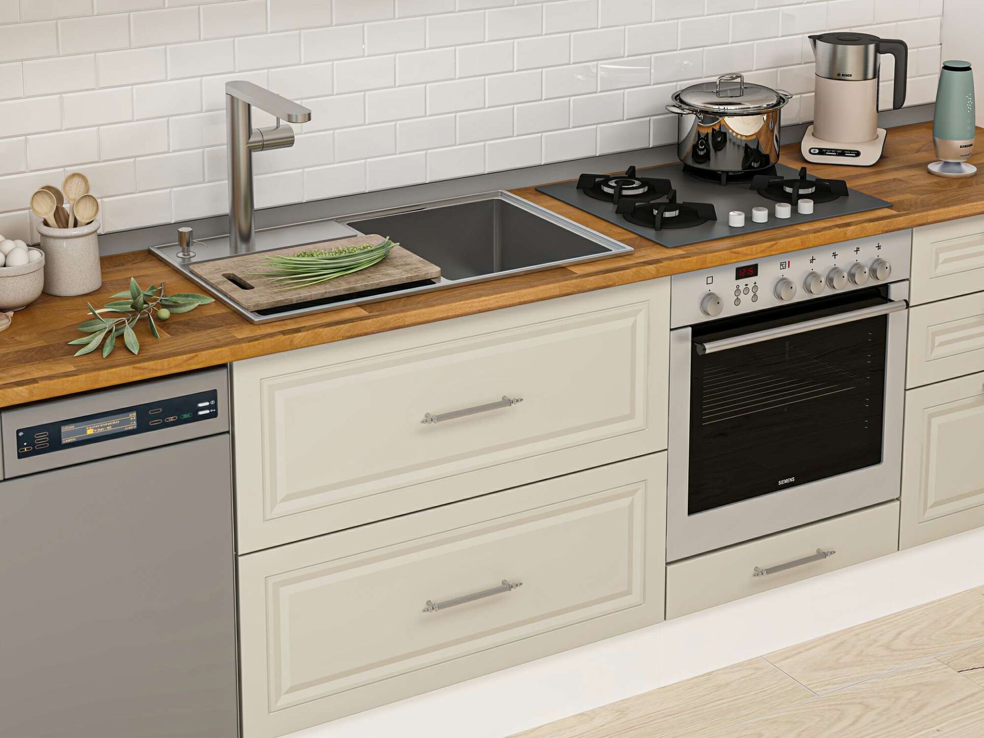 Alvinka 410X240 Cm Klasik Mebran Mutfak Dolabı Mbb-E90B60S60-2 Mebran | Kumtaşı - Mdf