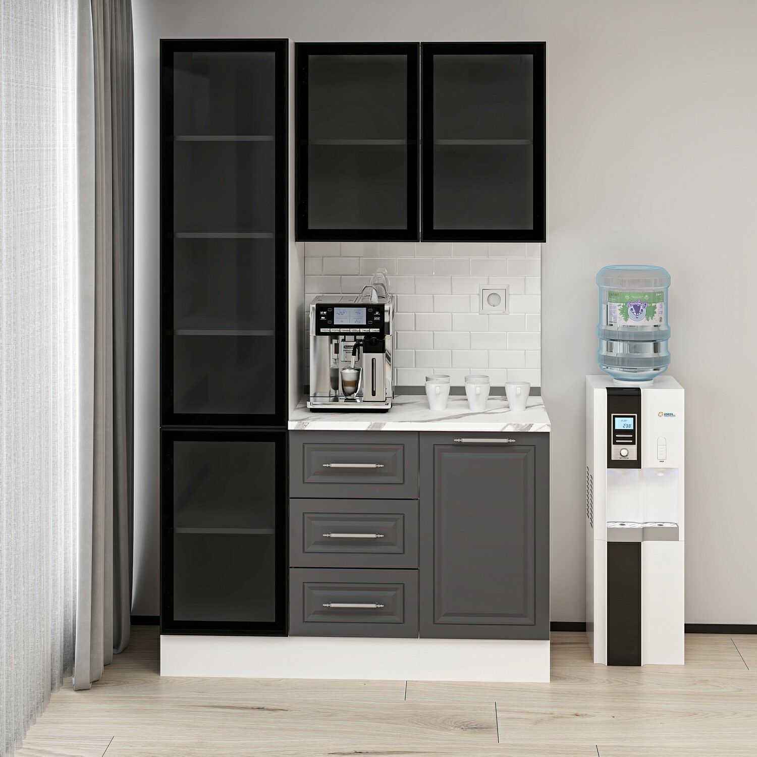 Alvinka Kahve Köşesi 135Cm Mbr_C Beyaz Antrasit Füme Cam
