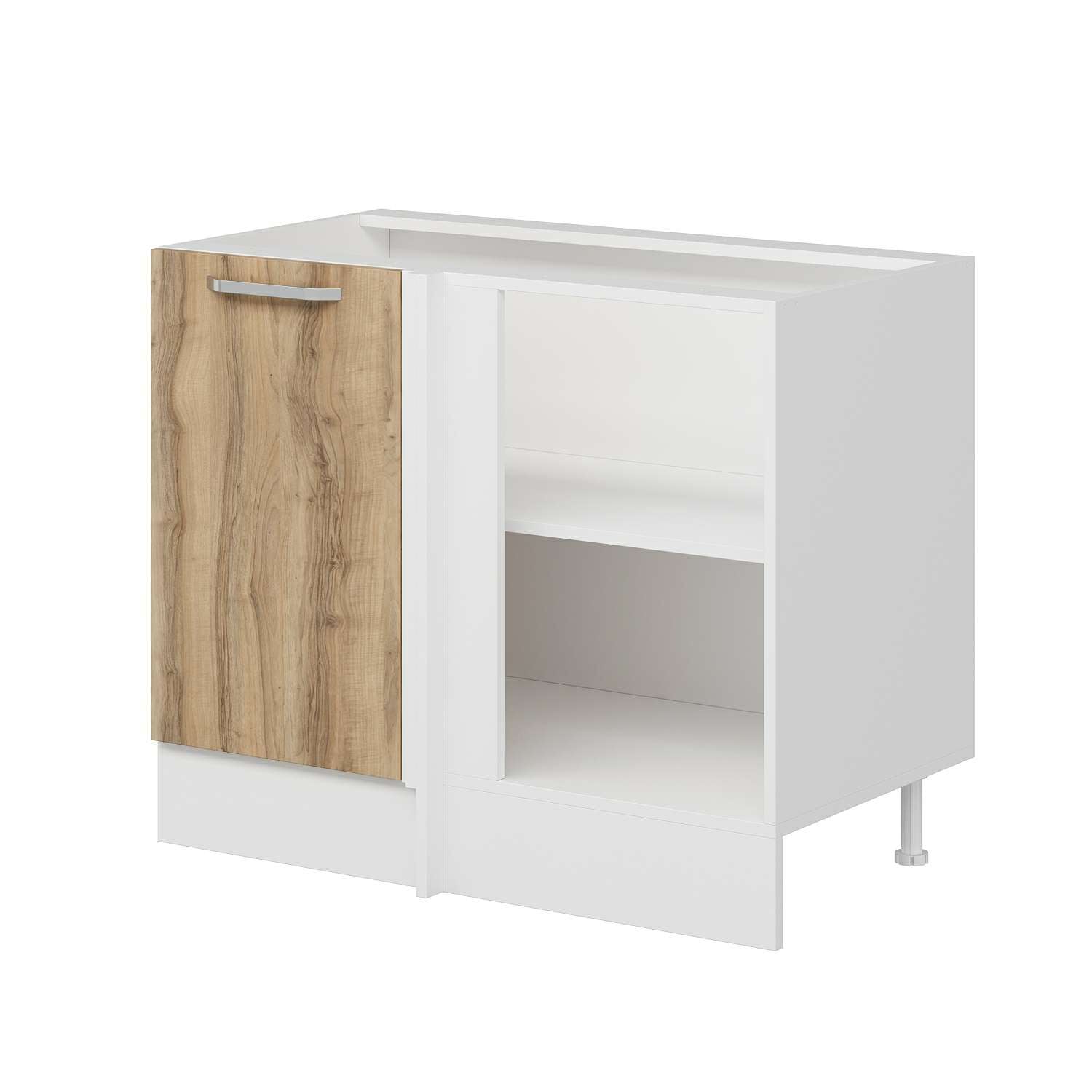 Köşe alt mutfak dolabı, mutfakta genellikle atıl kalan köşe alanlarını verimli şekilde değerlendirmek için tasarlanmıştır. Tezgâh altına uyumlu formu sayesinde köşe noktalarında maksimum depolama alanı sunar. Tencere, tava ve büyük mutfak gereçlerini düzenli biçimde saklamaya yardımcı olarak mutfakta kullanım kolaylığı sağlar.
