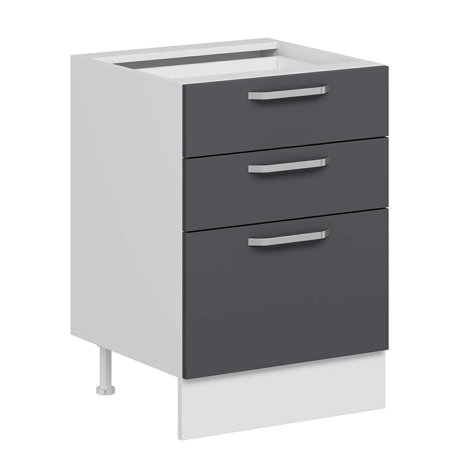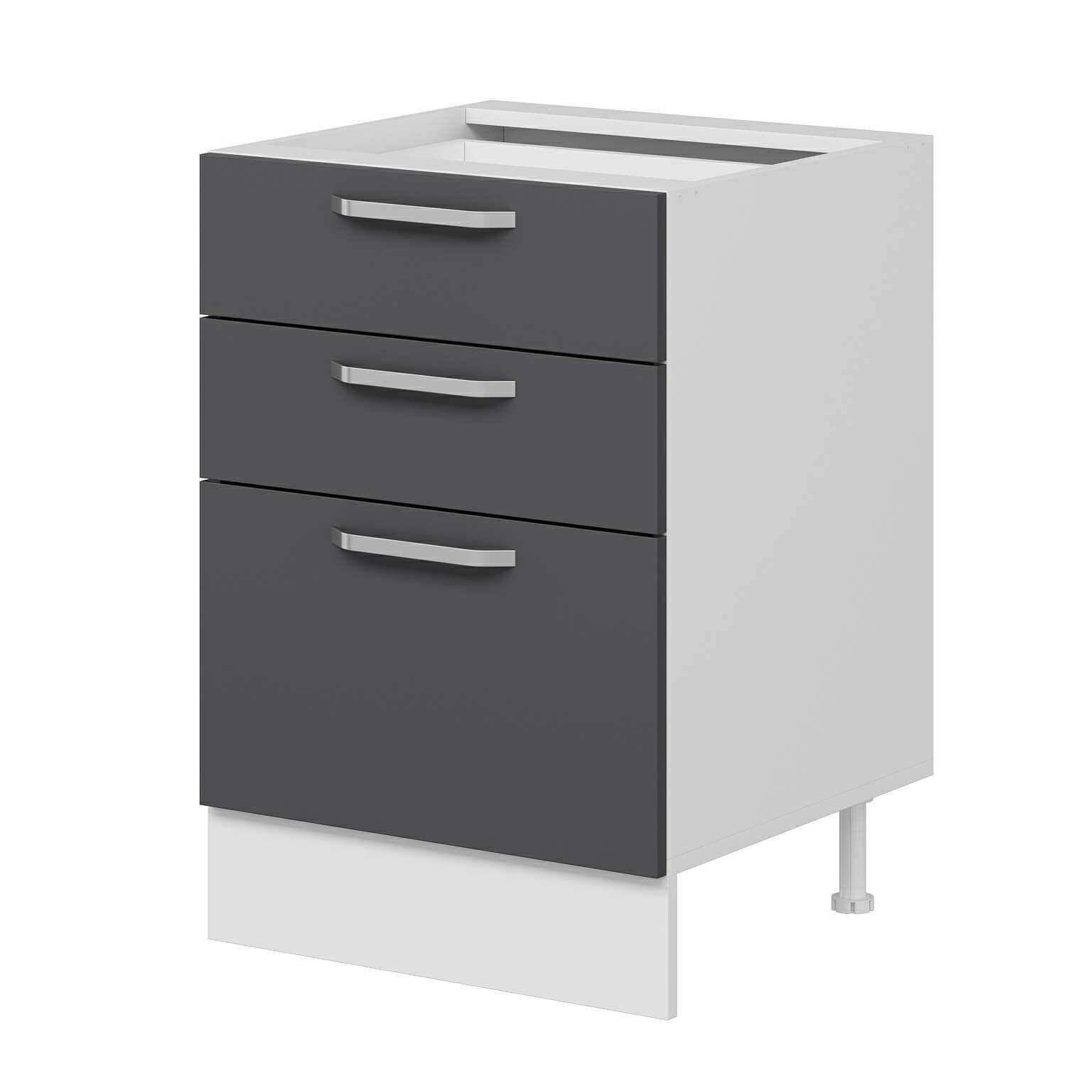 Alvinka Mutfak Modül Duz Alt 3Ç1B2K 60Cm Dolap Beyaz Antrasit