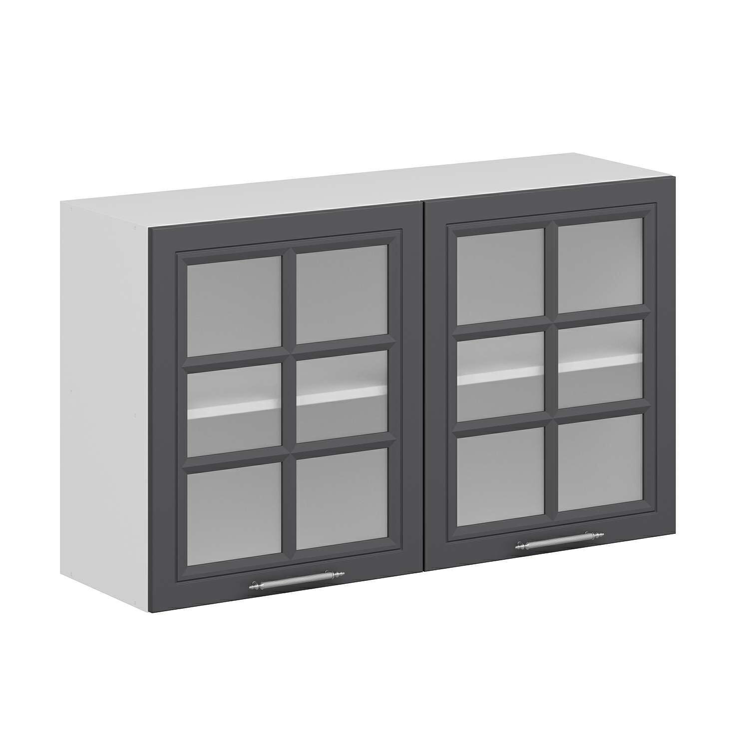 Alvinka Mutfak Modül Mbr_C Üst 2Dk1R 120-H72Cm Dolap Cam Beyaz Antrasit Mdf