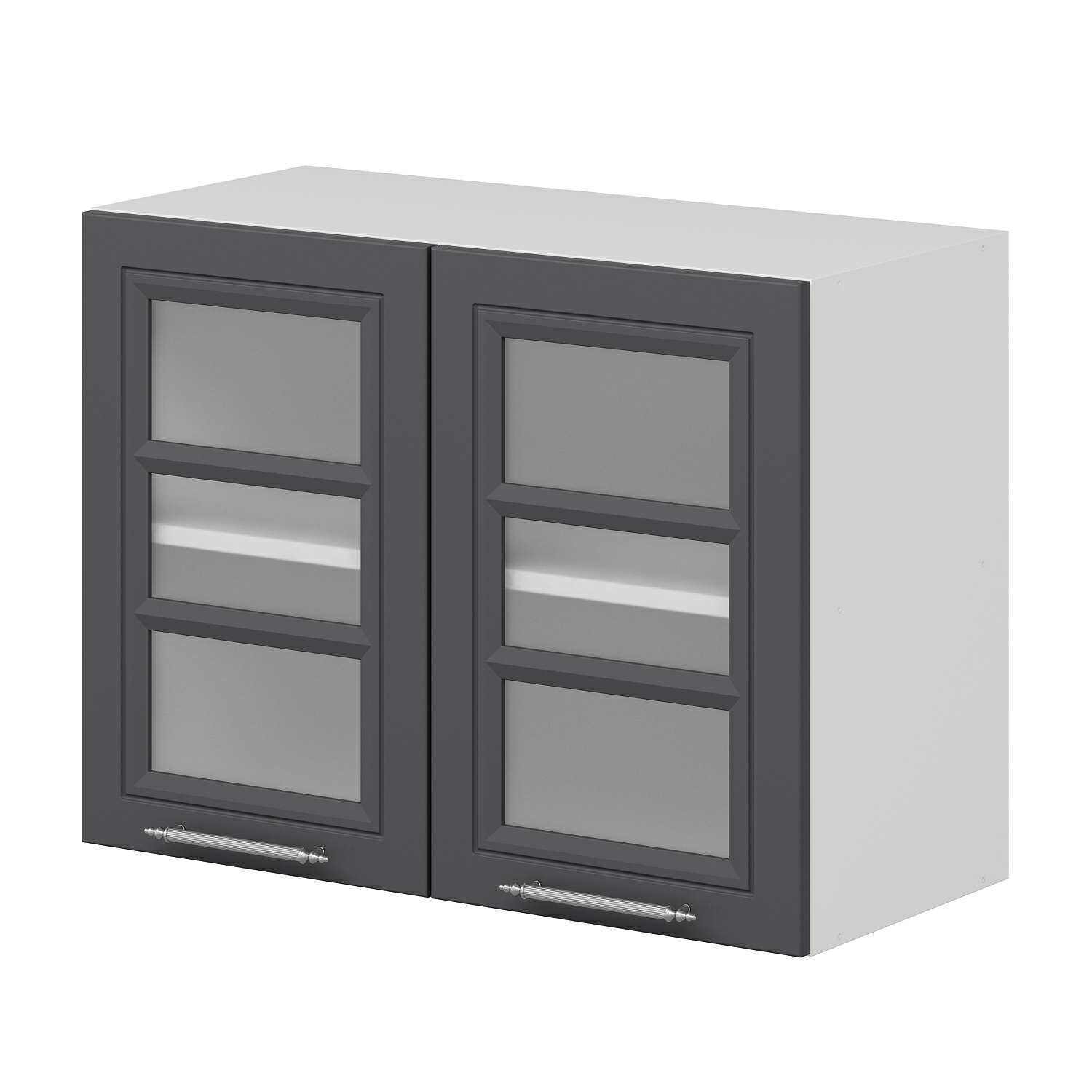 Alvinka Mutfak Modül Mbr_C Üst 2Dk1R 80-H60Cm Dolap Cam Beyaz Antrasit Mdf