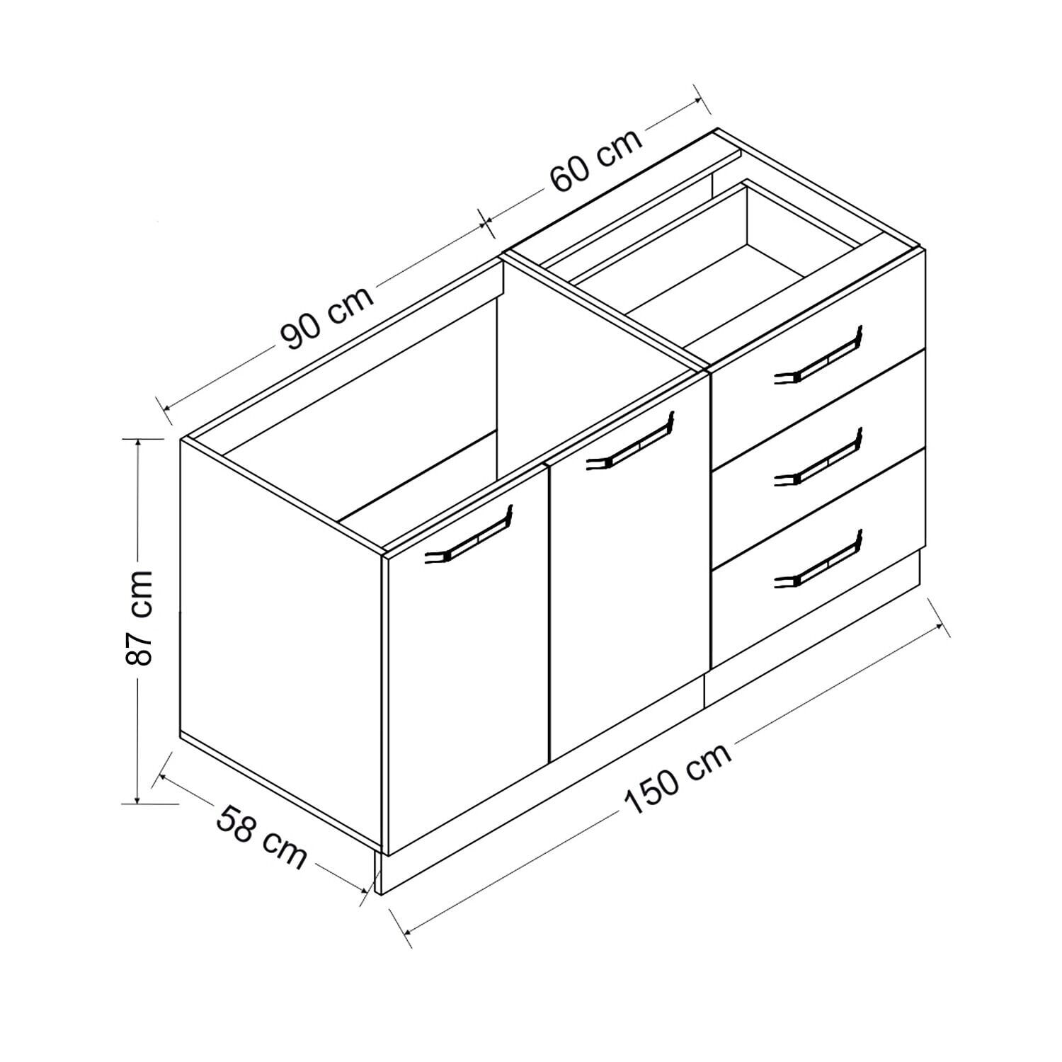 Minar 150 Cm Mutfak Dolabı Beyaz 150-B1-Alt Modül