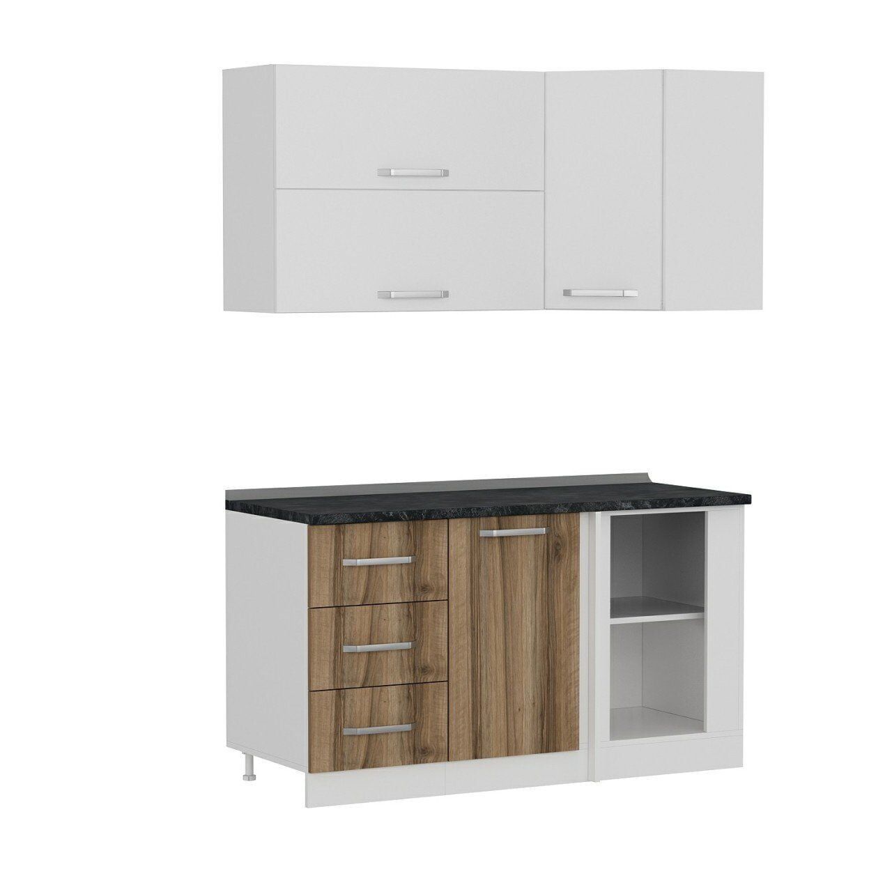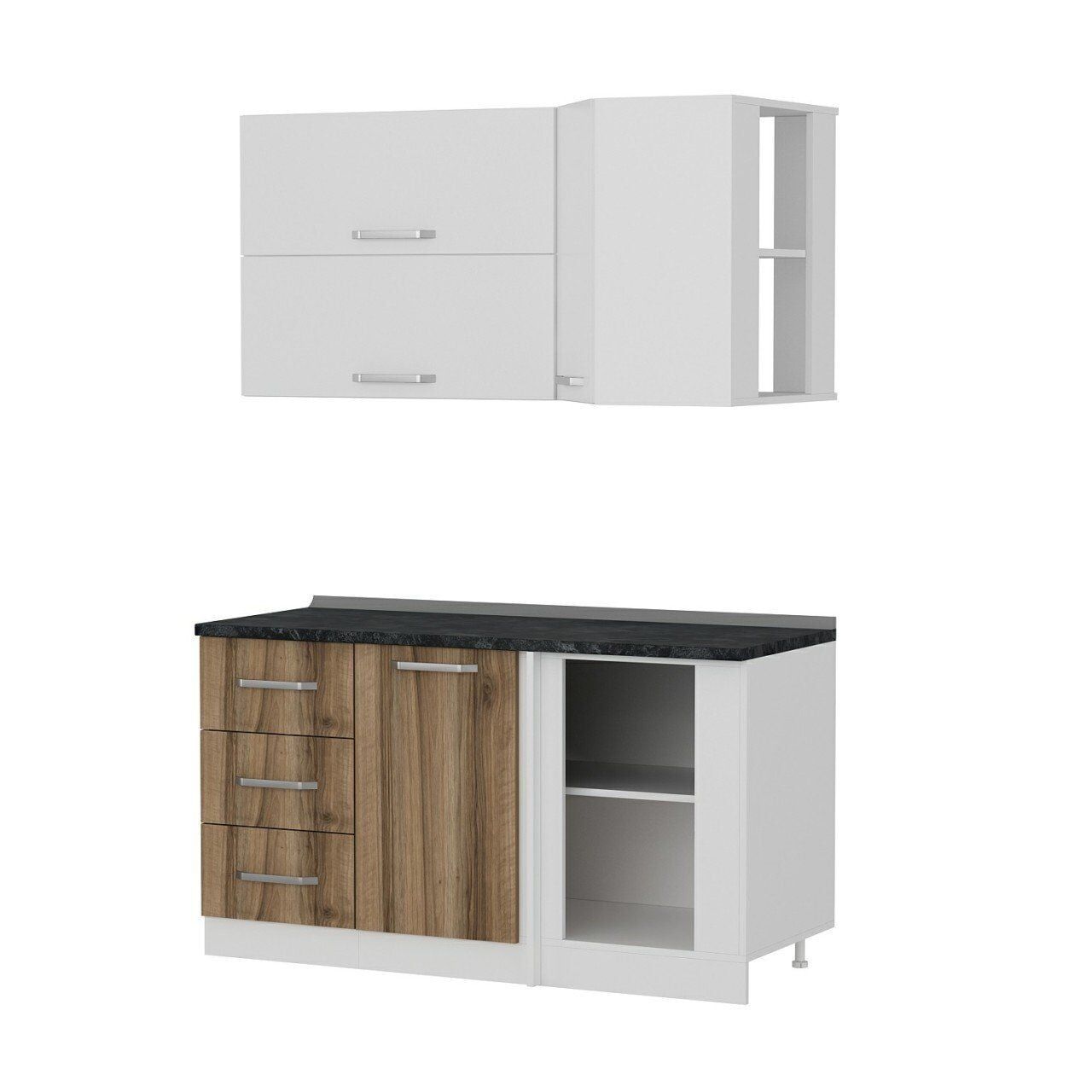 Minar 150Cm Köşe Mutfak Dolabı - Beyaz/Dore K150-D4