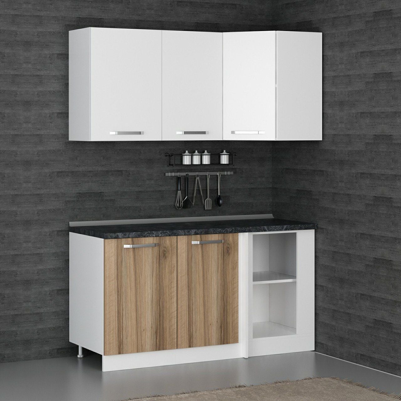Minar 155Cm Köşe Mutfak Dolabı - Beyaz/Dore K155-D1