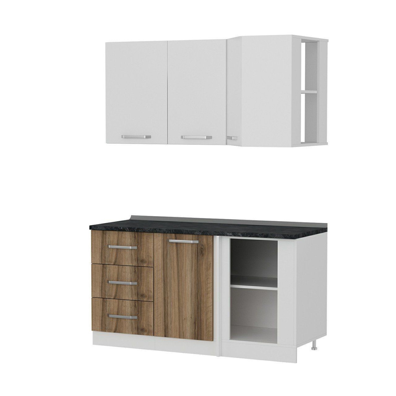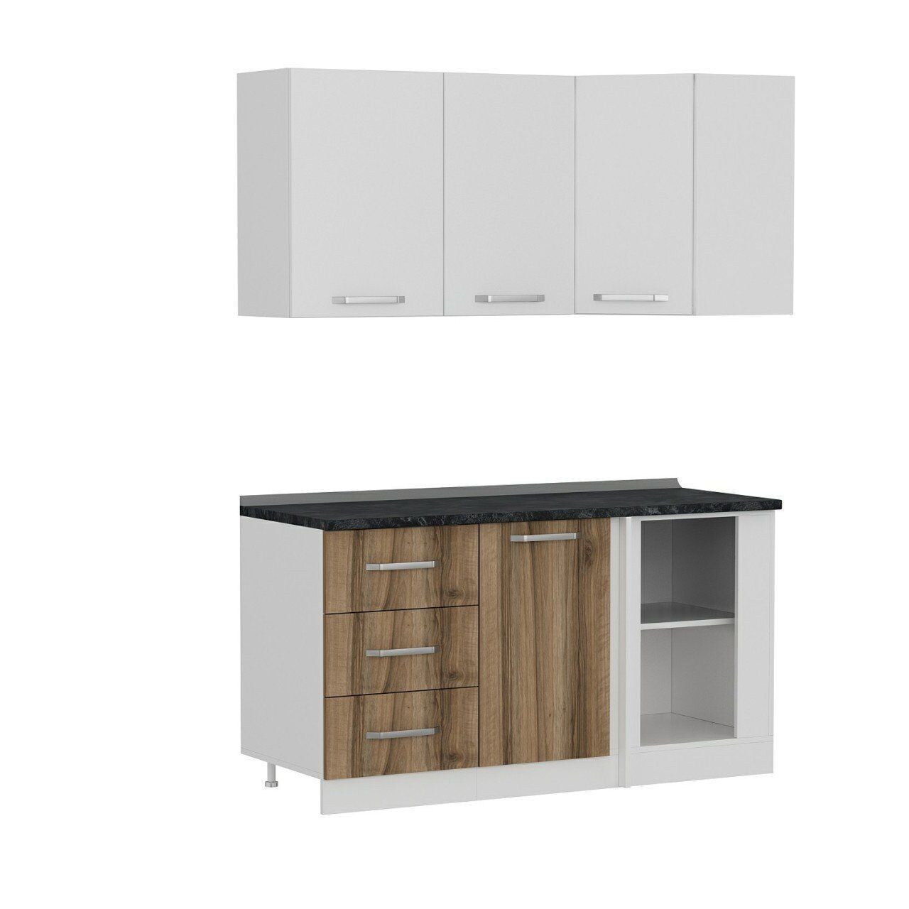 Minar 155Cm Köşe Mutfak Dolabı - Beyaz/Dore K155-D2