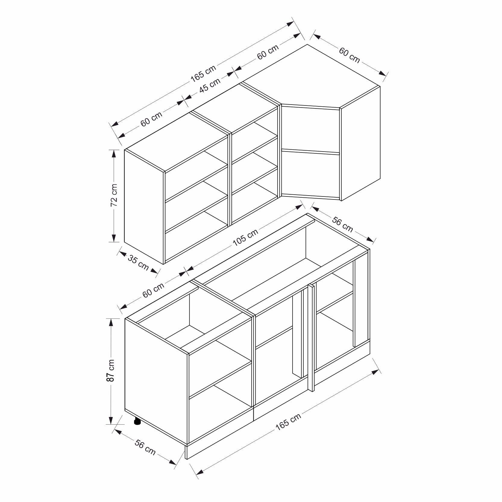 Minar 165Cm Köşe Mutfak Dolabı Beyaz Antrasit K165-Mcba1