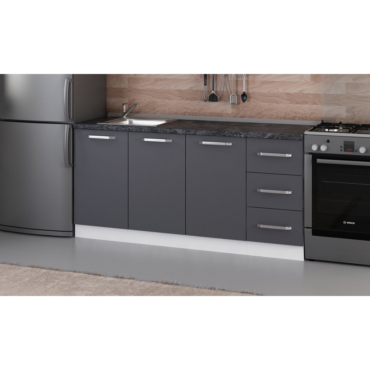 Minar 175 Cm Mutfak Dolabı Beyaz Antrasit 175-A1 -Alt Modül