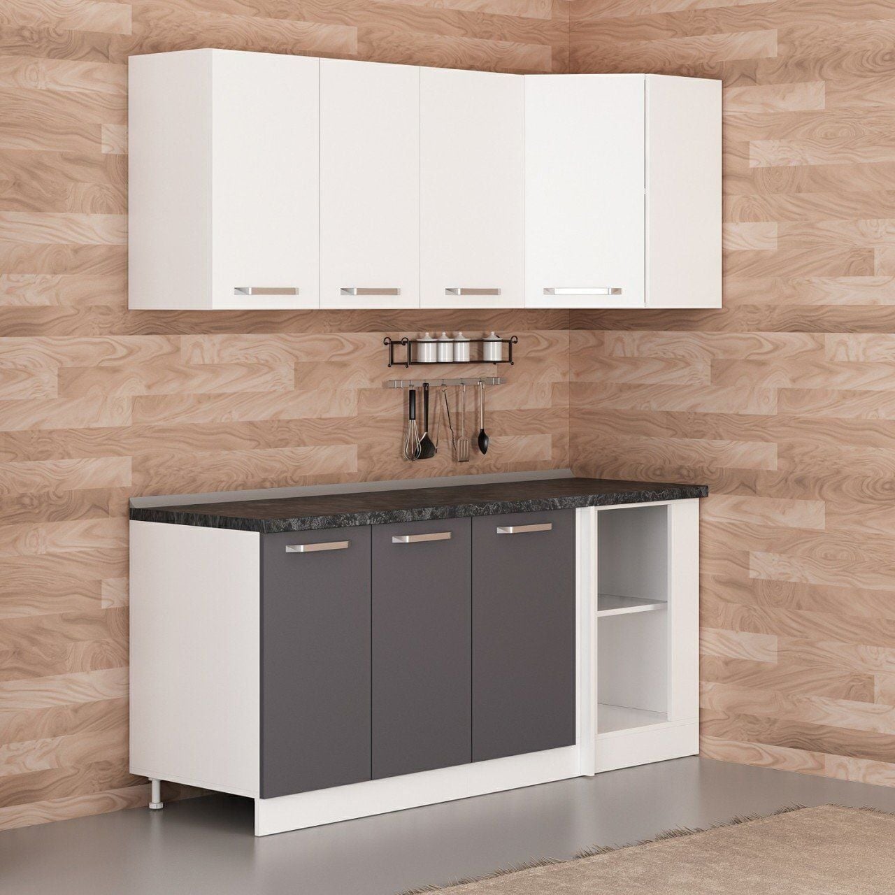Minar 185Cm Köşe Mutfak Dolabı - Beyaz/Antrasit K185-A2