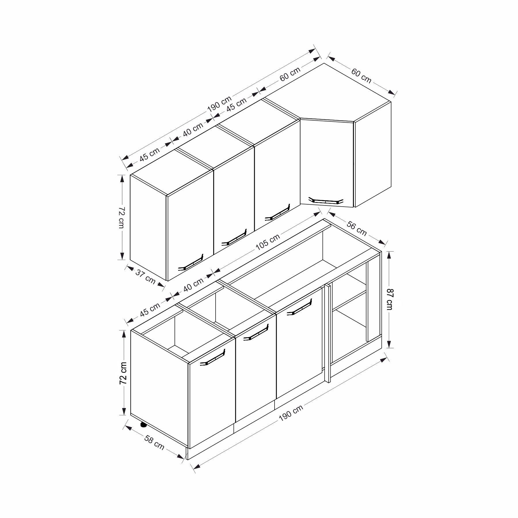 Minar 190Cm Köşe Mutfak Dolabı - Beyaz/Antrasit K190-A1