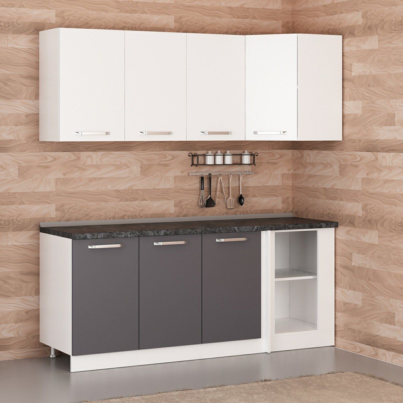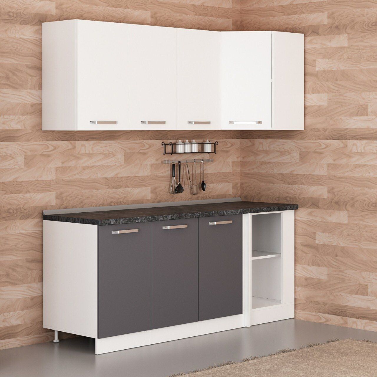 Minar 195Cm Köşe Mutfak Dolabı - Beyaz/Antrasit K195-A1