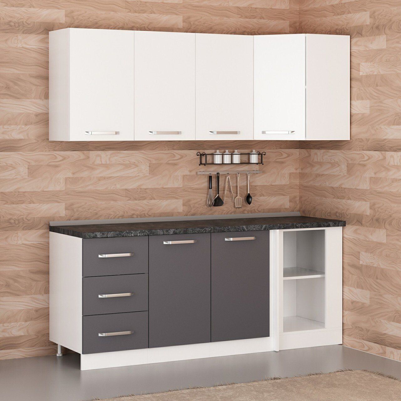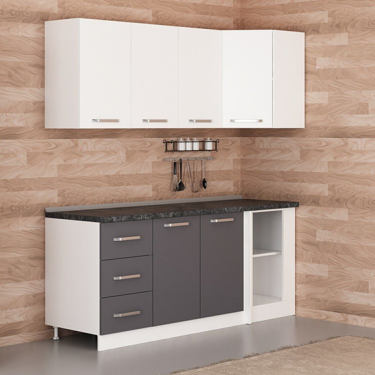 Minar 195Cm Köşe Mutfak Dolabı - Beyaz/Antrasit K195-A4
