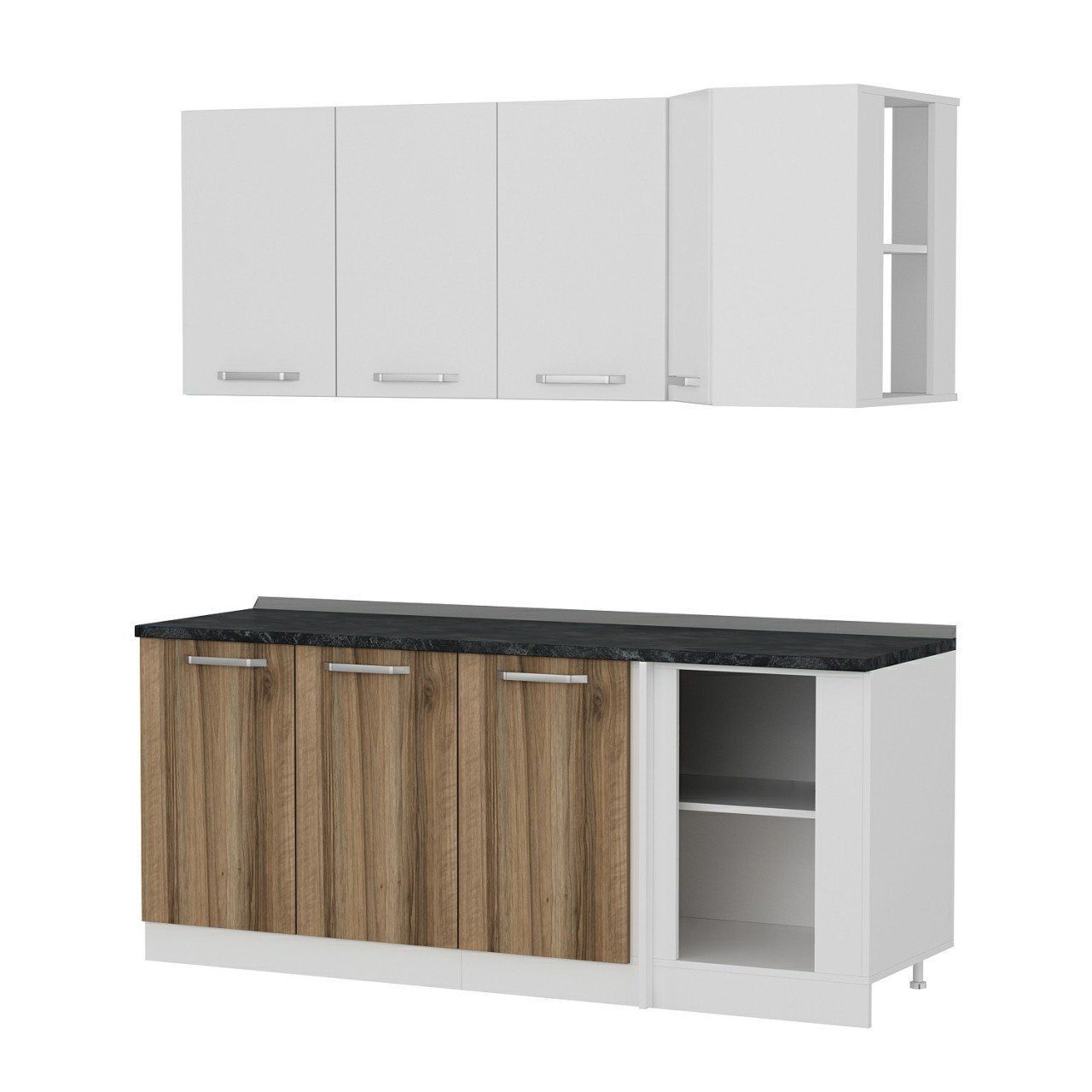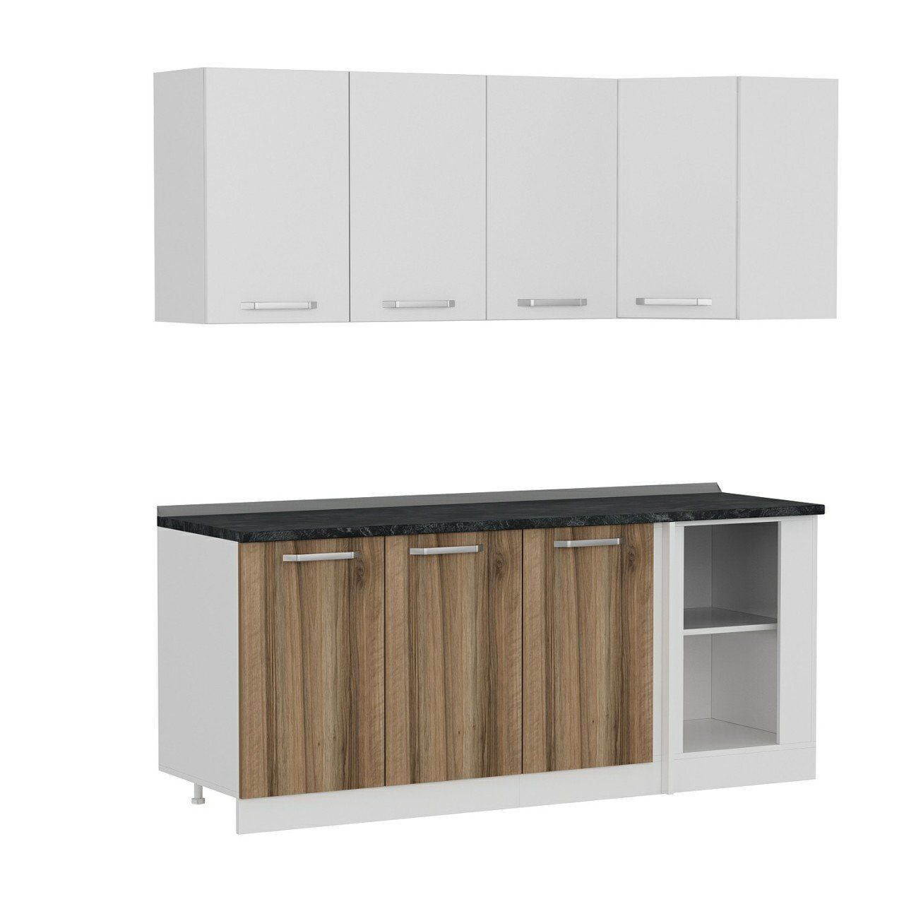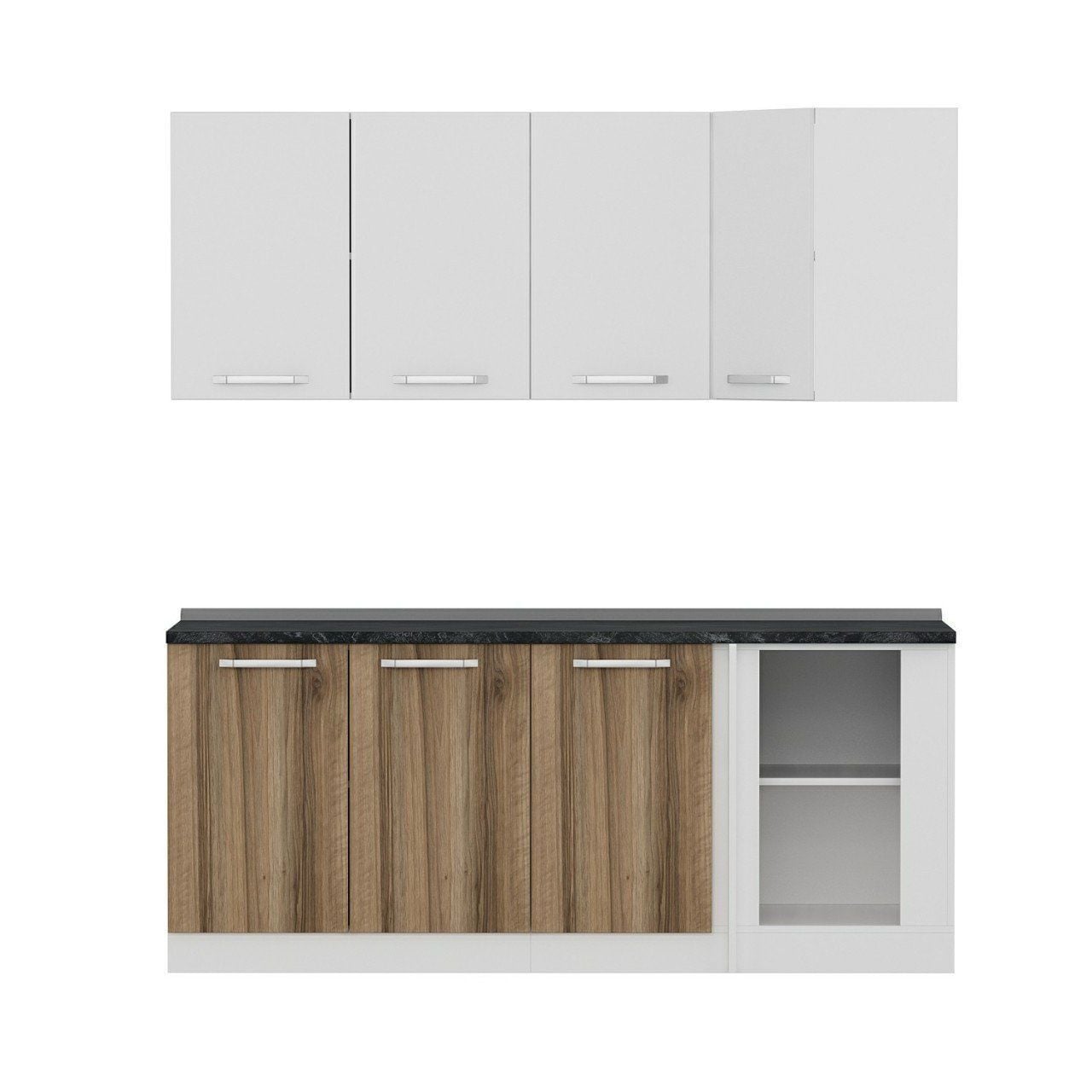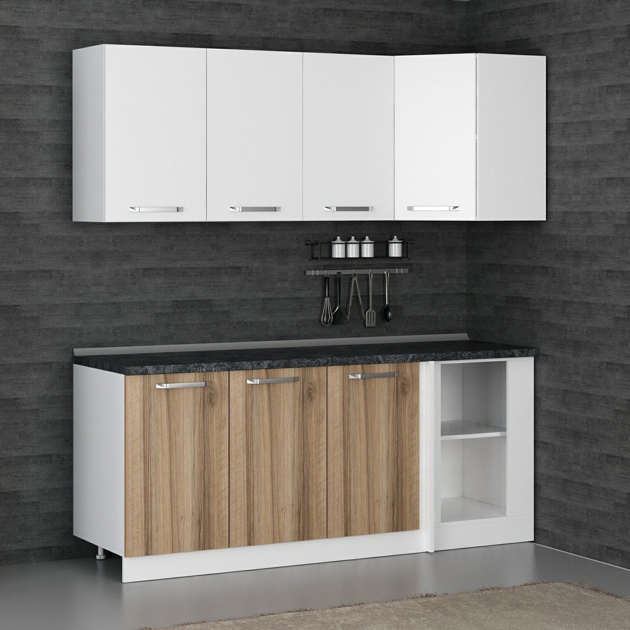 Minar 195Cm Köşe Mutfak Dolabı - Beyaz/Dore K195-D2