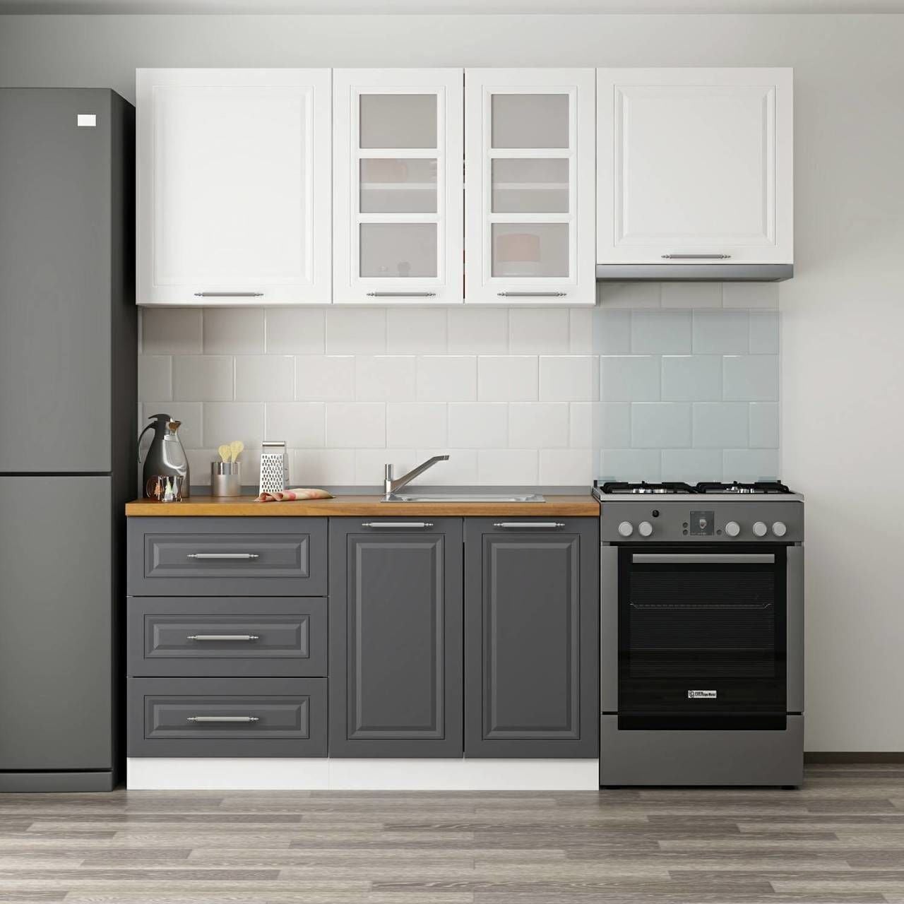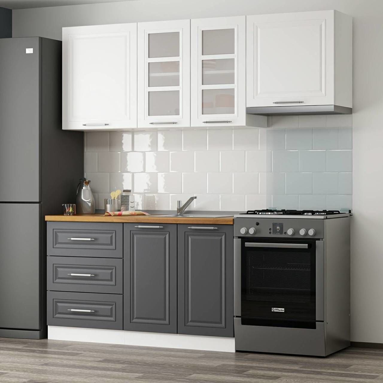 Minar 200 Cm Mebran C Mutfak Dolabı Beyaz Antrasit 200-Mcba2