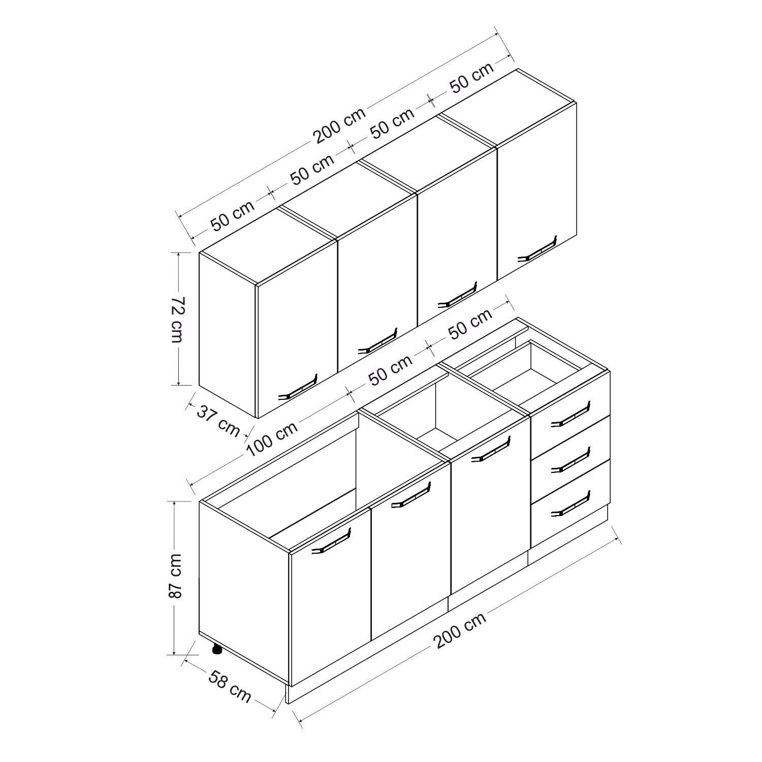 Minar 200 Cm Mutfak Dolabı Beyaz 200-B2-Alt Modül