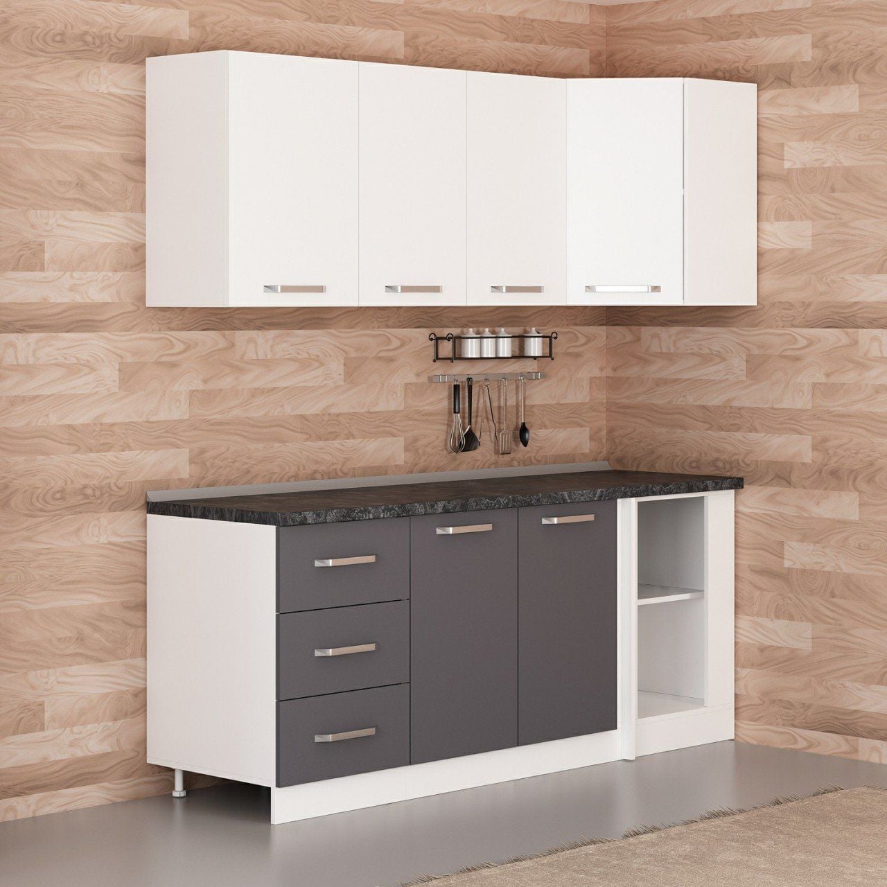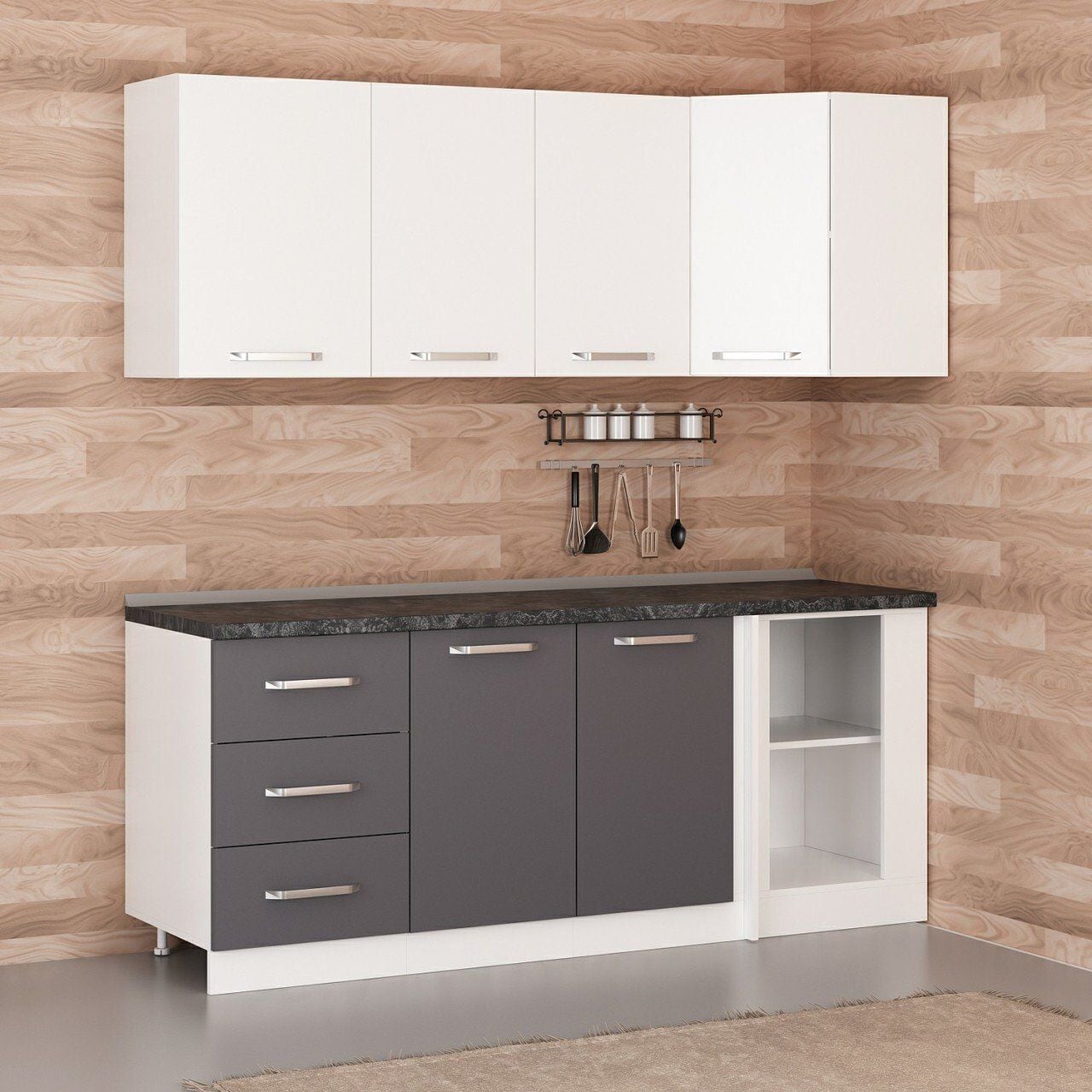 Minar 200Cm Köşe Mutfak Dolabı - Beyaz/Antrasit K200-A2