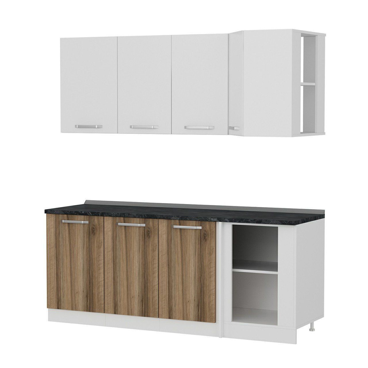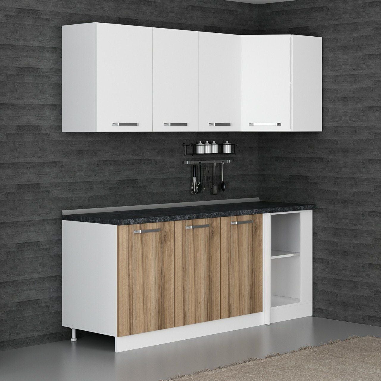 Minar 200Cm Köşe Mutfak Dolabı - Beyaz/Dore K200-D1