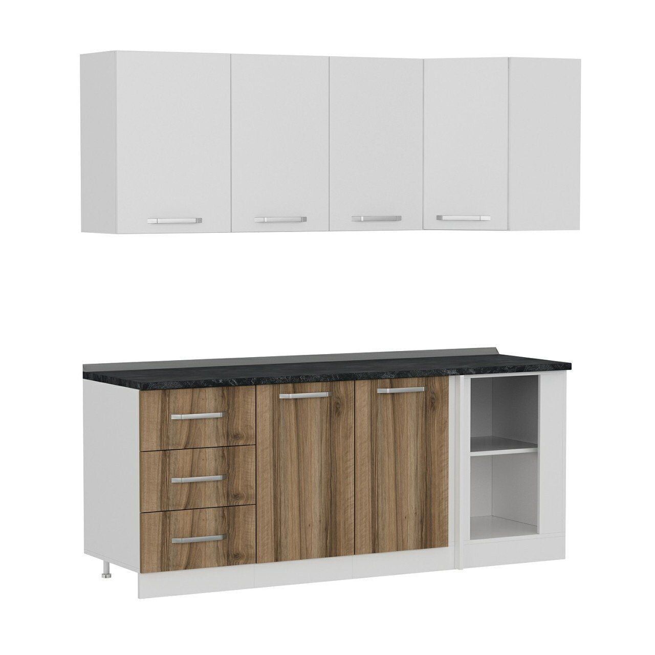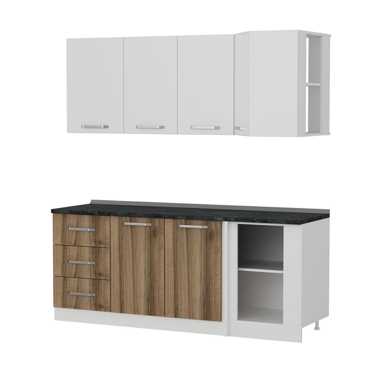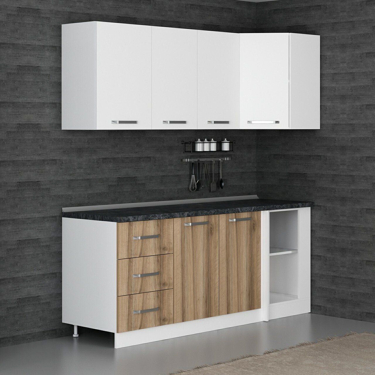 Minar 200Cm Köşe Mutfak Dolabı - Beyaz/Dore K200-D2