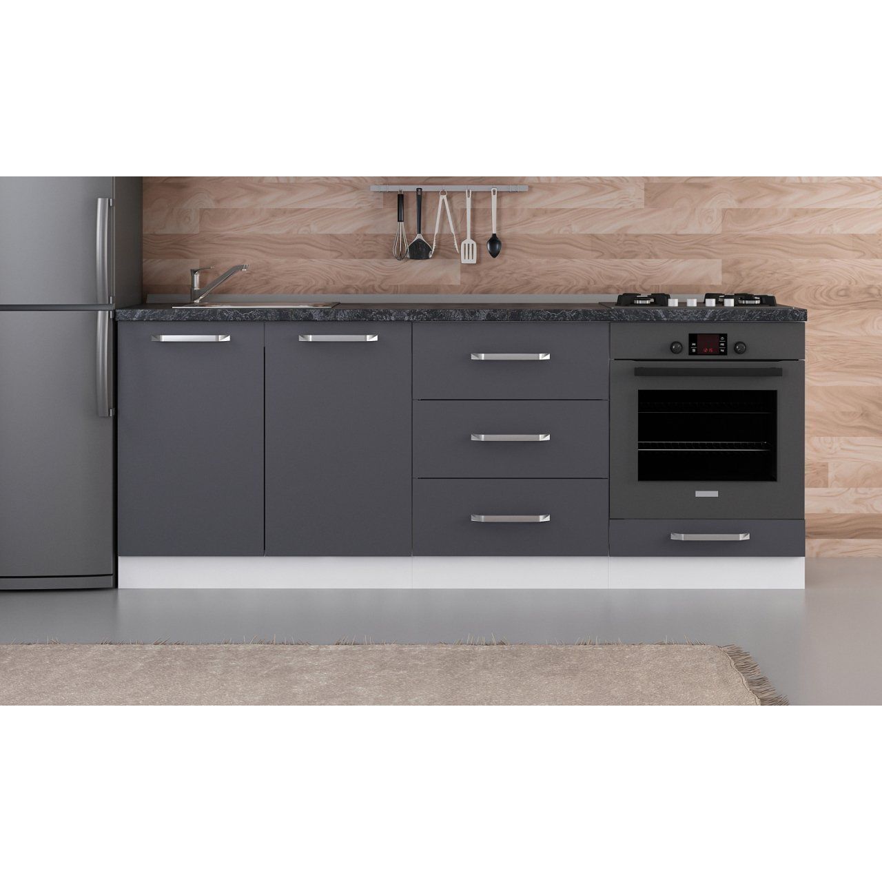 Minar 210 Cm Mutfak Dolabı Beyaz Antrasit 210-A3-Alt Modül